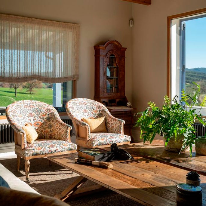 Resulta muy difícil decantarse por una única estancia de esta casa reformada en Cantabria. La vida bucólica está muy presente tanto en el salón como en la cocina gracias a ventanales que dejan ver las amplias praderas de esta provincia y esa niebla tan típica que aparece en los amaneceres soleados.