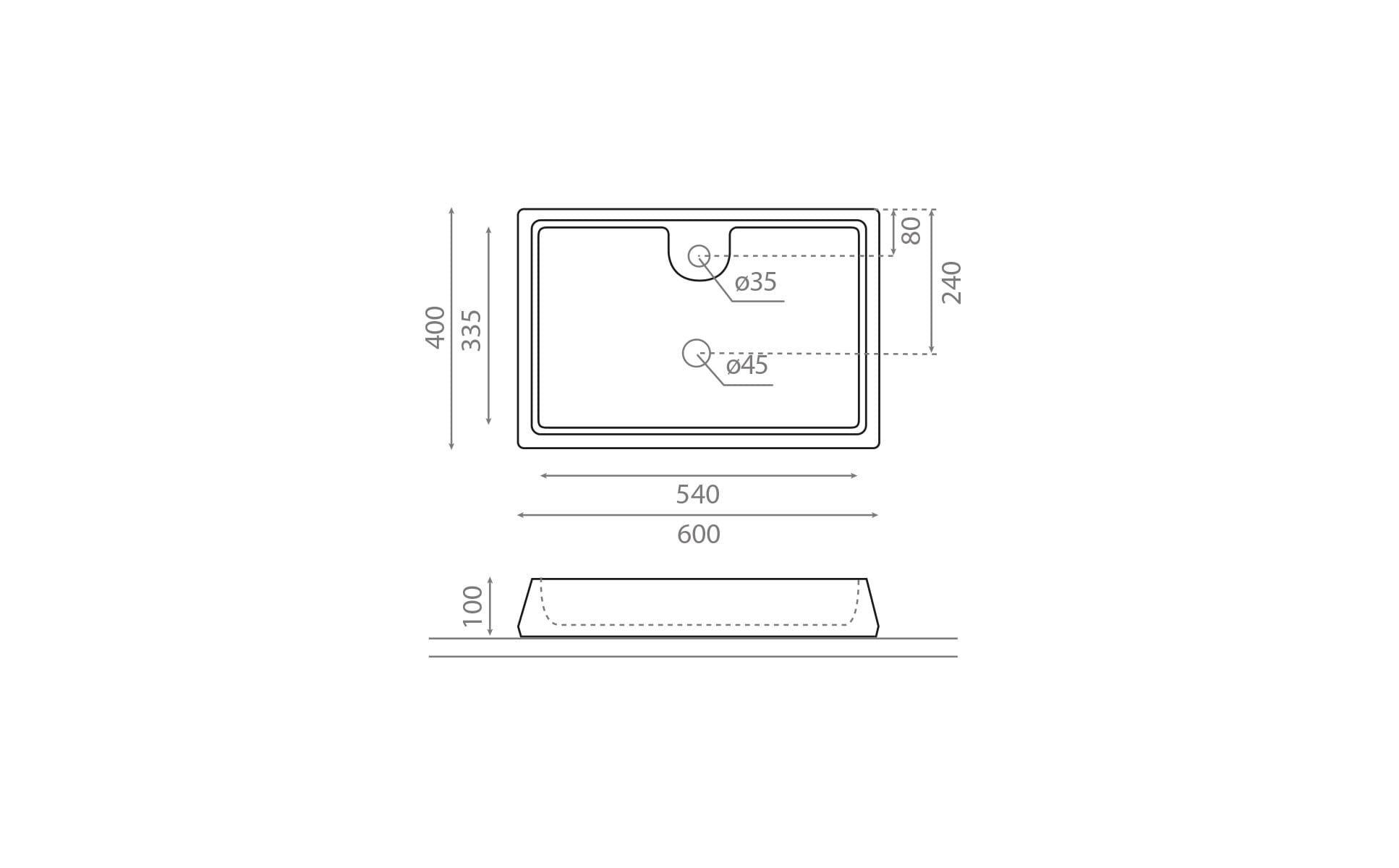 Formato cuadrado o rectangular en porcelana brillo. Diseños de sobre encimera, sin rebosadero, que se integran con encimeras Bathco para una solución completa.