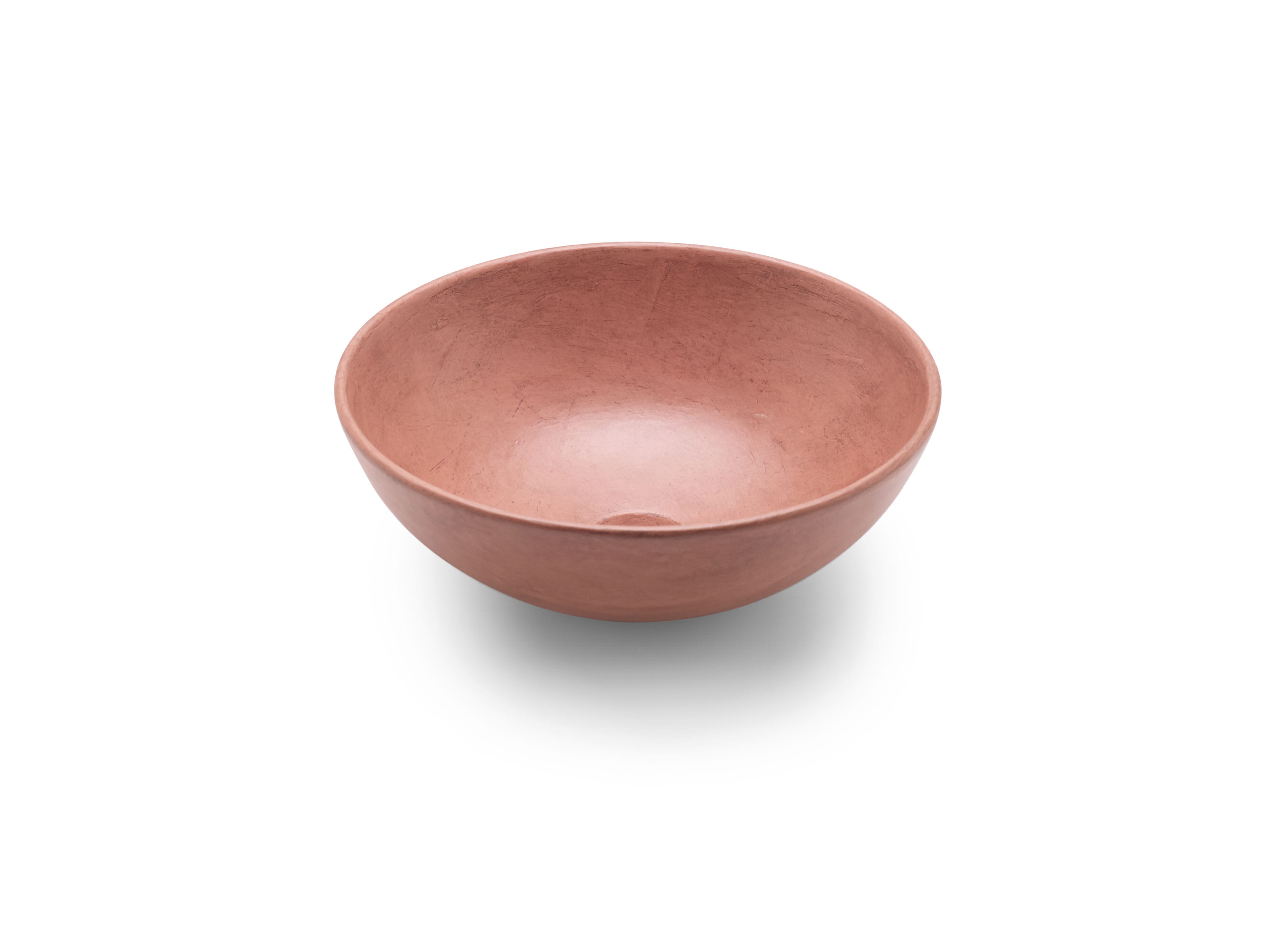 Serie de lavabos circulares en porcelana pintados a mano simulando el microcemento. Disponibles en gris claro, gris oscuro o teja, combinan textura artesanal con la resistencia de la porcelana. Cada pieza es única y aporta carácter contemporáneo.
