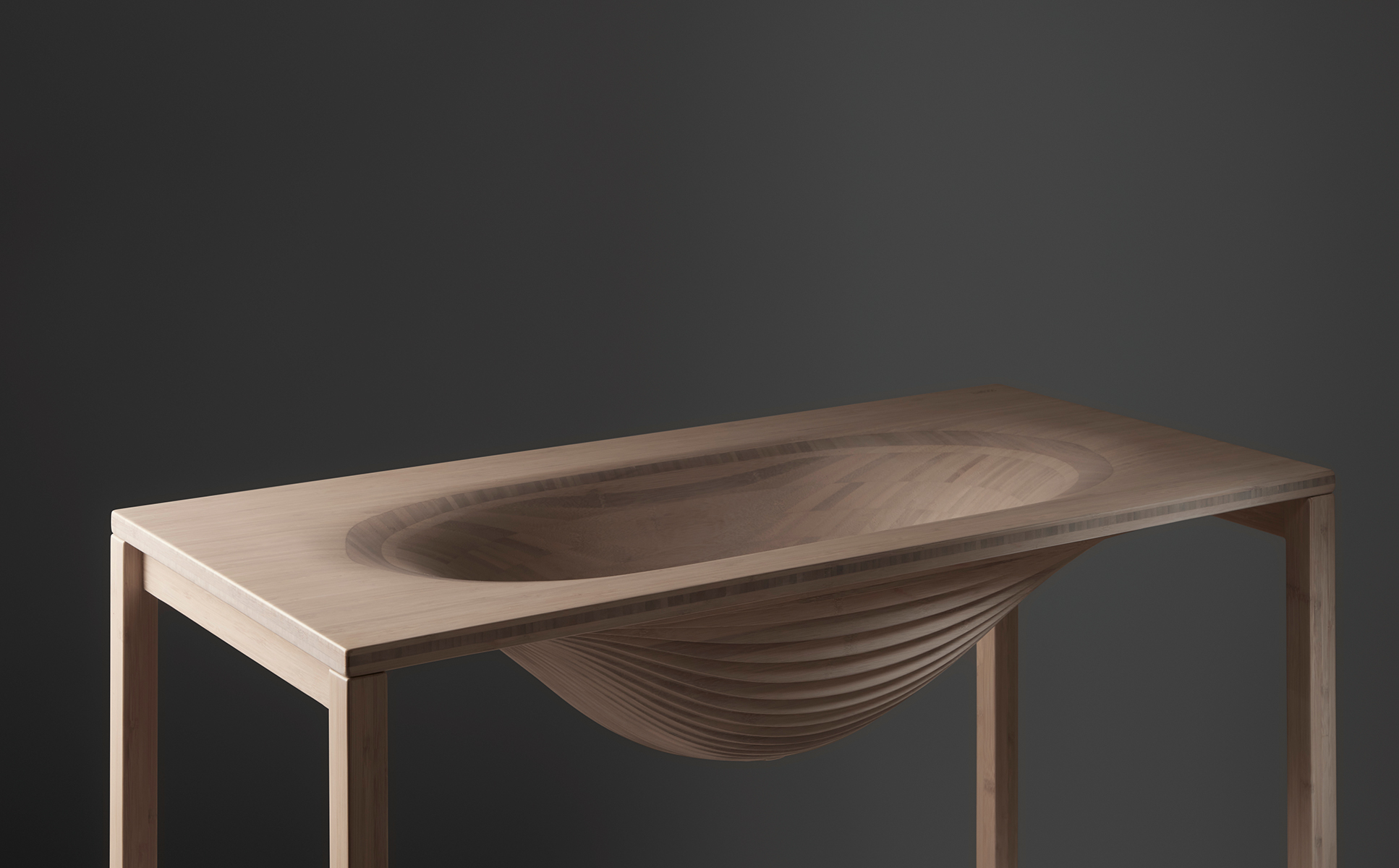Mueble lavabo de bambú. Transmite naturalidad y ligereza.