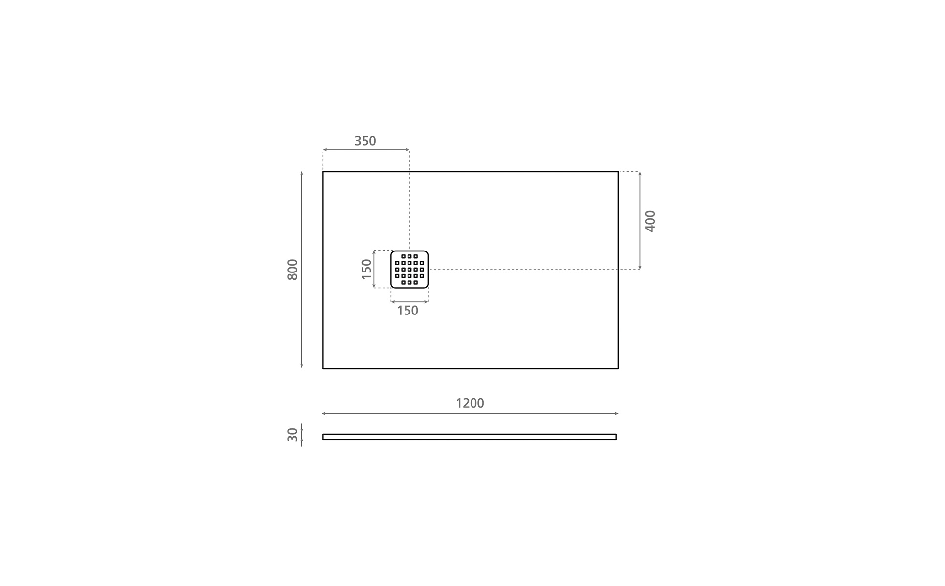 Plato de resina de poliéster con cargas minerales y recubrimiento en gel coat sanitario. Disponible en blanco o antracita, con espesor de 3 cm y desagüe lateral.