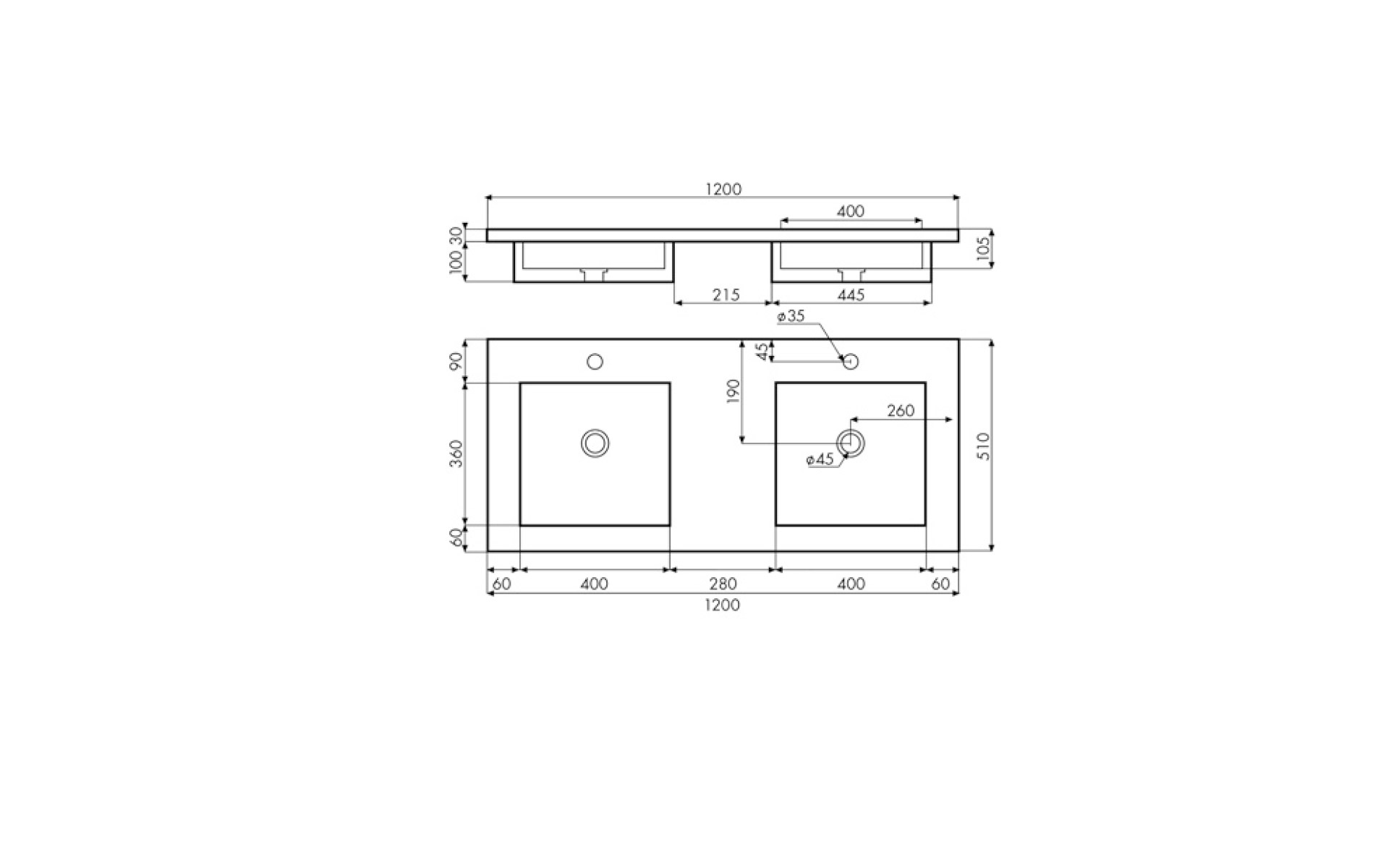 Lavabo rectangular de cemento. Su materialidad y líneas rectas aportan fuerza y sobriedad.
