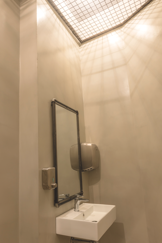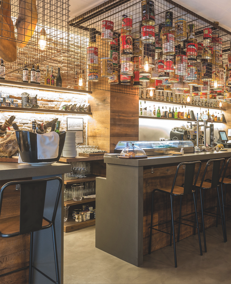 Nos encontramos en el viejo y concurrido centro de Barcelona, en plena ebullición de las Ramblas, a la altura del Liceo. En una de las callejuelas que entran hacia las intimidades de la ciudad Condal. Allí mismo nace en abril de 2015 Tabarlot, un bar de tapas diseñado por Batua Interiores Creativos, cuyo encargo llega con un objetivo muy claro: crear un espacio joven y vivaz, donde poder degustar una combinación de vermuts, cervezas artesanas, conservas de calidad y jamón del bueno. Para ello, se proyectó un espacio donde se refleja claramente que la conserva o la lata que la contiene, pasa a ser la protagonista. Latas y jamones cobran vida, encerrándolos en jaulas, que presiden las dos grandes barras, cada una especializada en un plato estrella. En el espacio conviven materiales toscos y rudos como el micro-cemento y las mallas electro-soldadas, con materiales nobles y cálidos como la madera de roble. El binomio es constante incluso en el baño donde conviven las rejas metálicas y la porcelana del lavabo Gomera perteneciente a la colección mini de Bathco, una pieza perfecta para espacios reducidos.