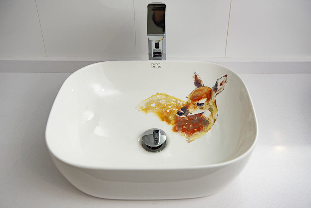 El trabajo del Atelier impulsa la experiencia fascinante que resulta visitar las instalaciones de Cabárceno trasladando a sus animales más representativos a los baños por medio de ilustraciones sobre la cerámica.