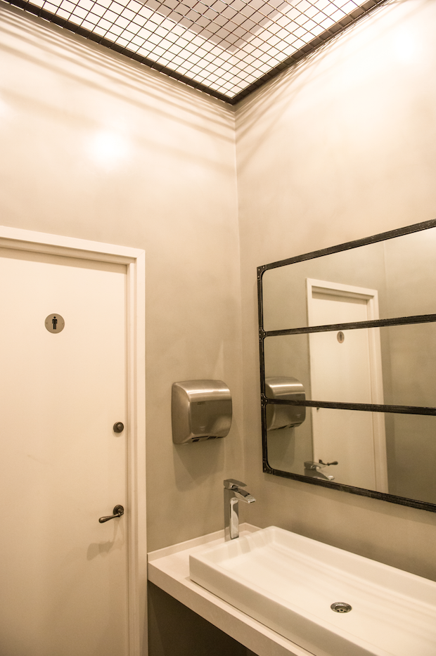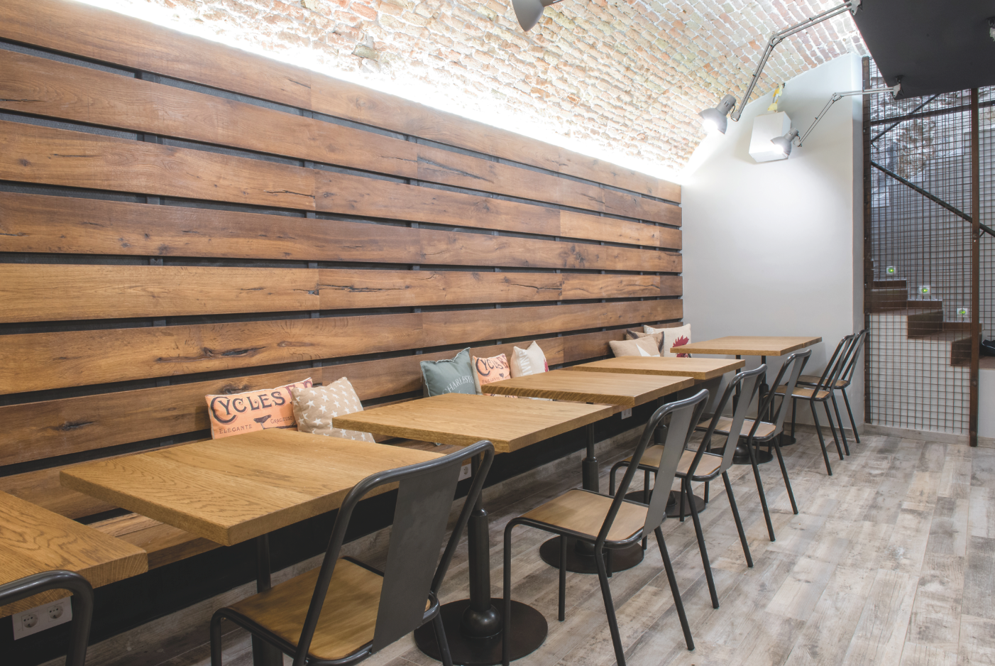 We’re in the busy old quarter of Barcelona, in the midst of the bustle of the Ramblas, near the Liceo. On one of the narrow streets that lead into the intimate heart of the “city of counts”. There, in April 2015, Tabarlot was born, a tapas bar designed by Batua Interiores Creativos, whose assignment came with a very clear goal: to create a young and lively space where people could sample a range of vermouths, craft beers, quality tinned foods, and top-quality Spanish ham. To do so, it designed a space that clearly reflects that the food, or the tin that contains it, is the protagonist. Tins and ham legs are brought alive in the cages that preside over the two large bars, each specialised in a signature dish. Simple and industrial materials, like microcement and electro-welded mesh, are juxtaposed with noble and warm materials, like oak. The juxtaposition is everywhere, even in the bathroom where metal grates coexist with the porcelain of the Gomera washbasin from Bathco’s capsule collection, a perfect piece for small spaces.