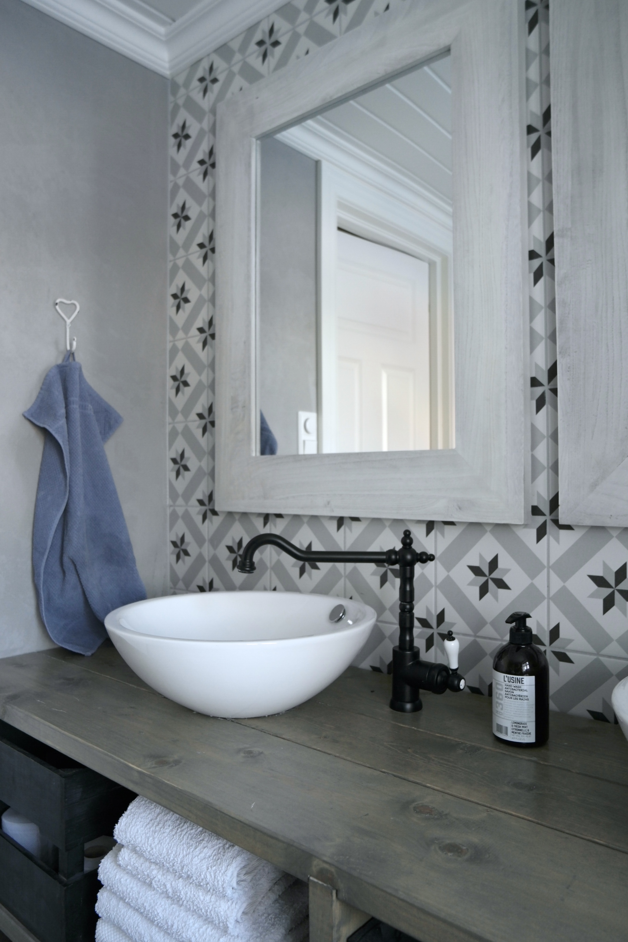 In the bathroom, Flisespesialisten tiles were chosen, which add a note of uniqueness, along with the Bathco Castellon C washbasins on a wooden cabinet that was custom-made to take full advantage the space. The mirrors from Mias Interior by Natalie are the finishing touches to this place intended for a couple. An important detail for achieving this countrified but totally contemporary atmosphere was the use of microcement on the walls to lend uniformity and practicality.