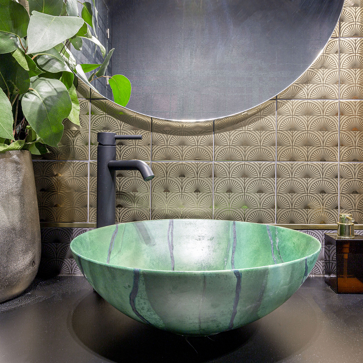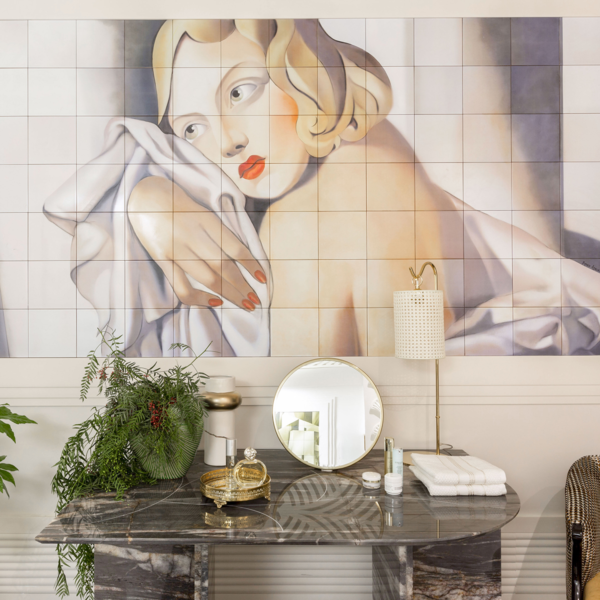AtelierBathco estuvo presente en CasaDecor en la edición de 2020 de la mano de Virginia Sánchez en un espacio que rinde homenaje a la artista Tamara de Lempicka, una de las cabezas visibles del Art Decó Neoyorkino.