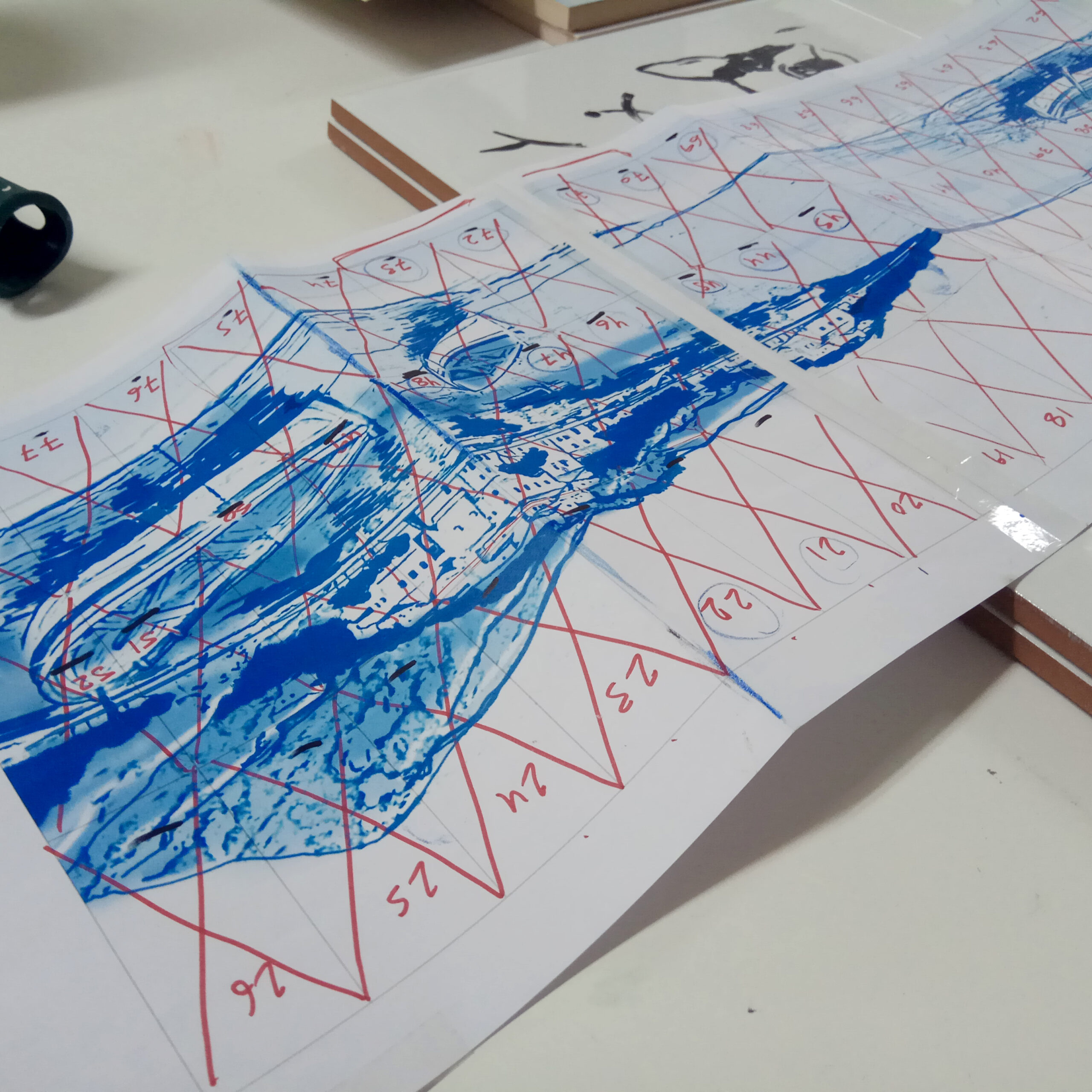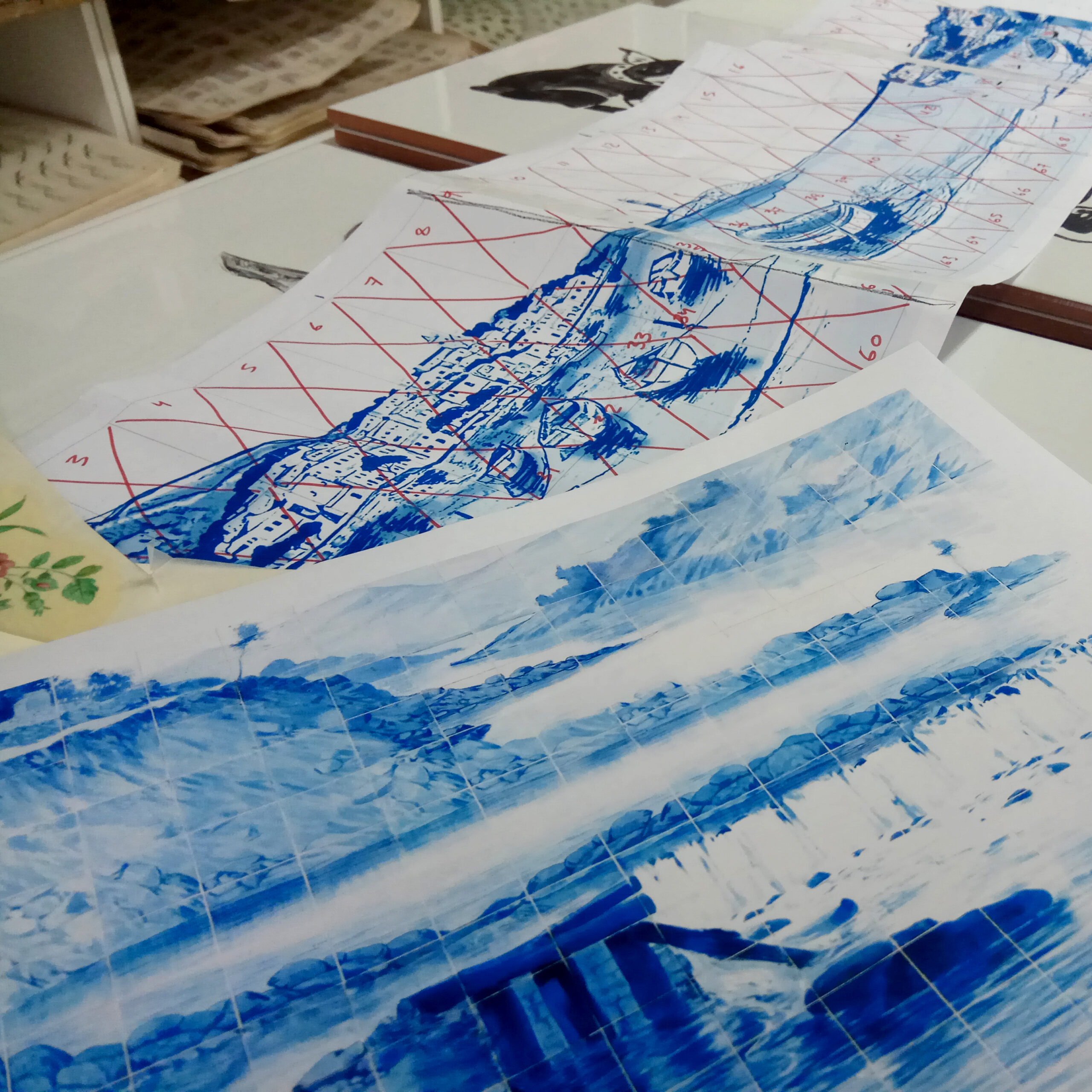 Maria Centeno y Emeric Minaya plantearon diez metros cuadrados de azulejos a modo de lienzo para crear un mural que vistiese la marisquería del stand de Cevisama. Pescados y mariscos a la plancha serían los protagonistas de la mesa por lo que el paisaje debía ser marino,haciendo alusión al mar salado que nos deja productos de primera calidad.