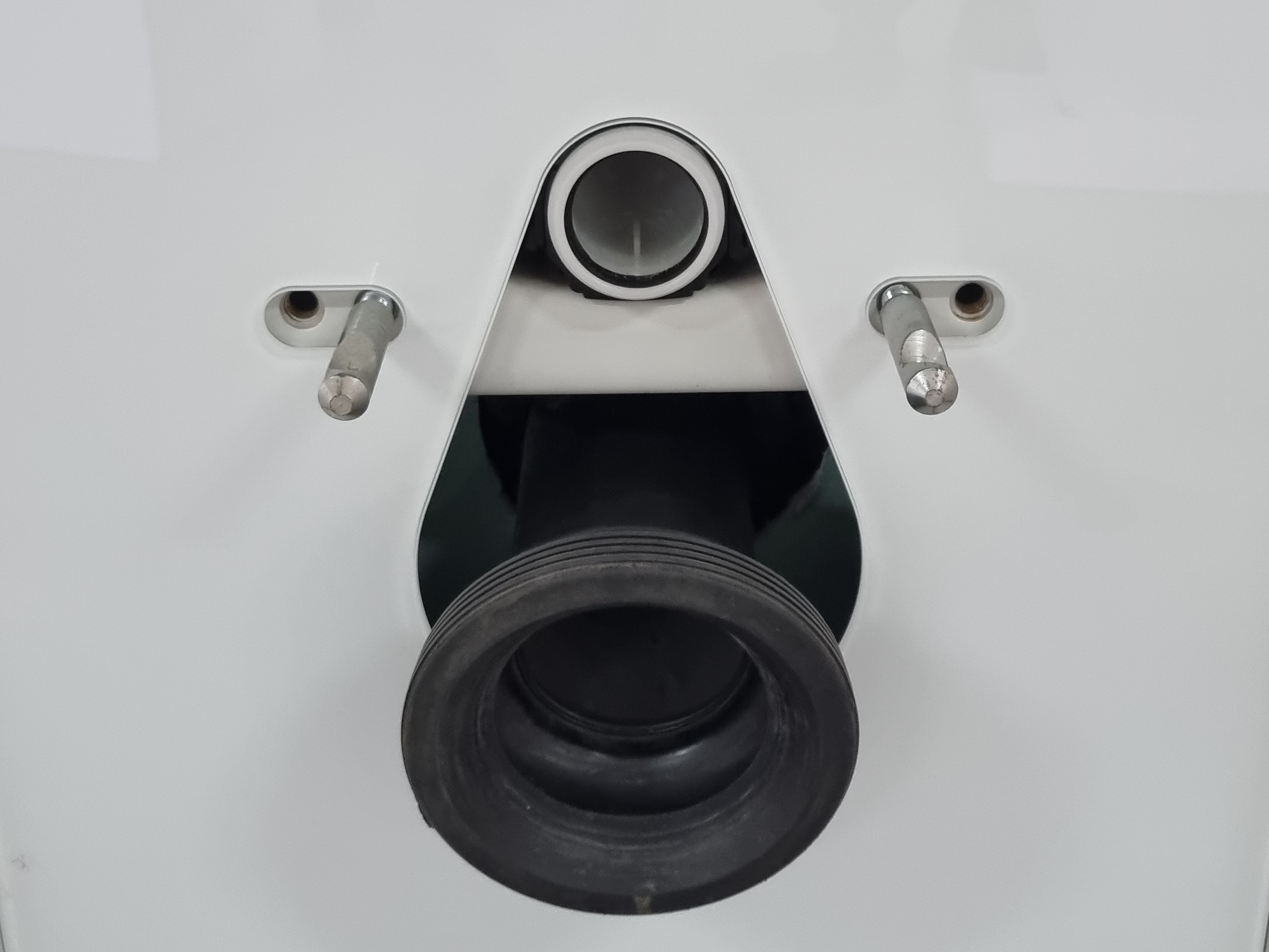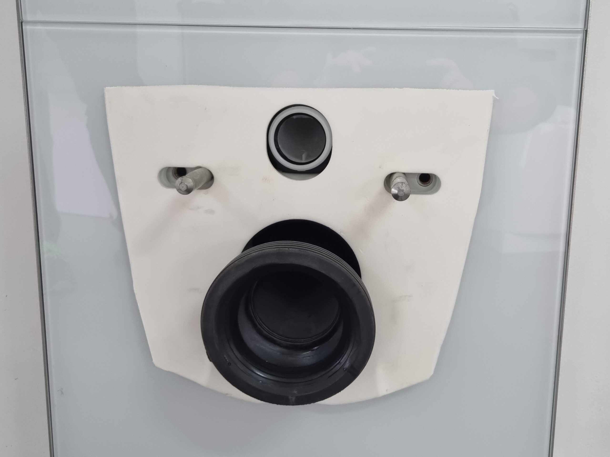 6. Acopla el inodoro: Coloca el inodoro suspendido asegurándote de acoplar correctamente la toma y el codo de evacuación. Asegura que esté nivelado y alineado correctamente con las conexiones.