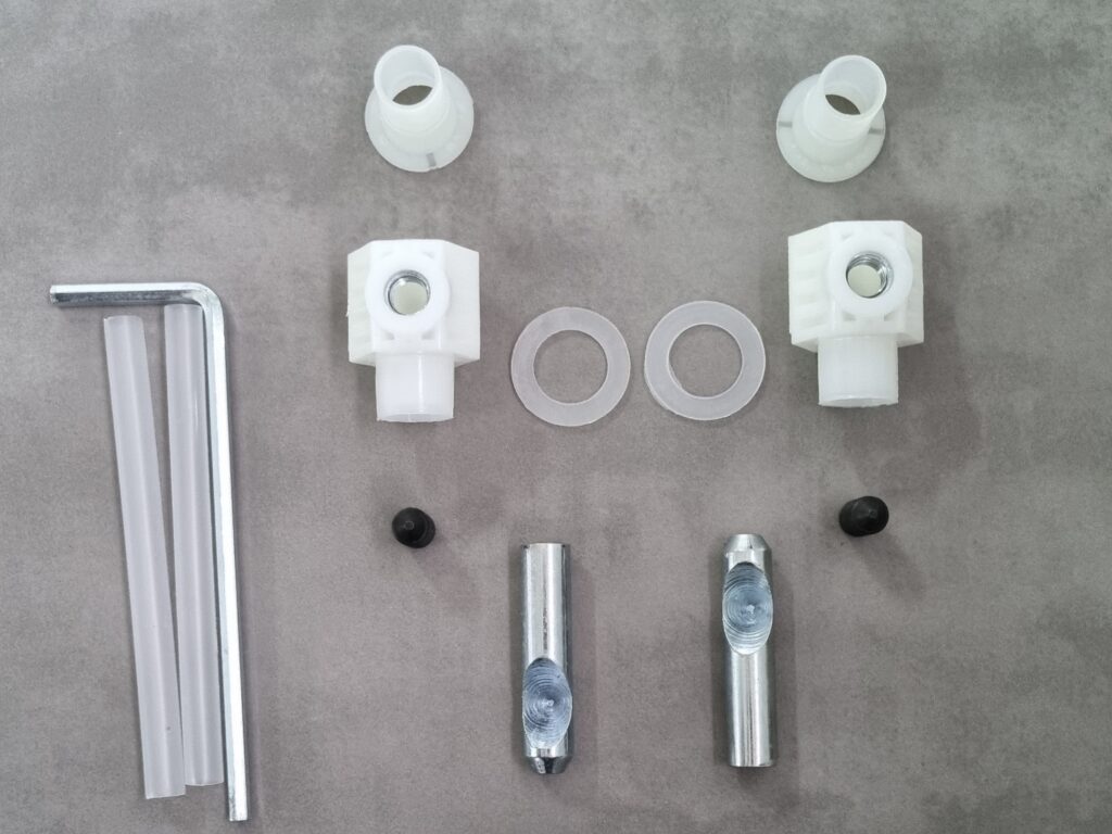 2. Enrosca ligeramente el tornillo: Enrosca ligeramente el tornillo que más tarde encajará en los rebajes de las piezas cilíndricas previamente instaladas en la cisterna. Esto facilitará el ajuste final una vez que estés listo para fijar el inodoro en su lugar.