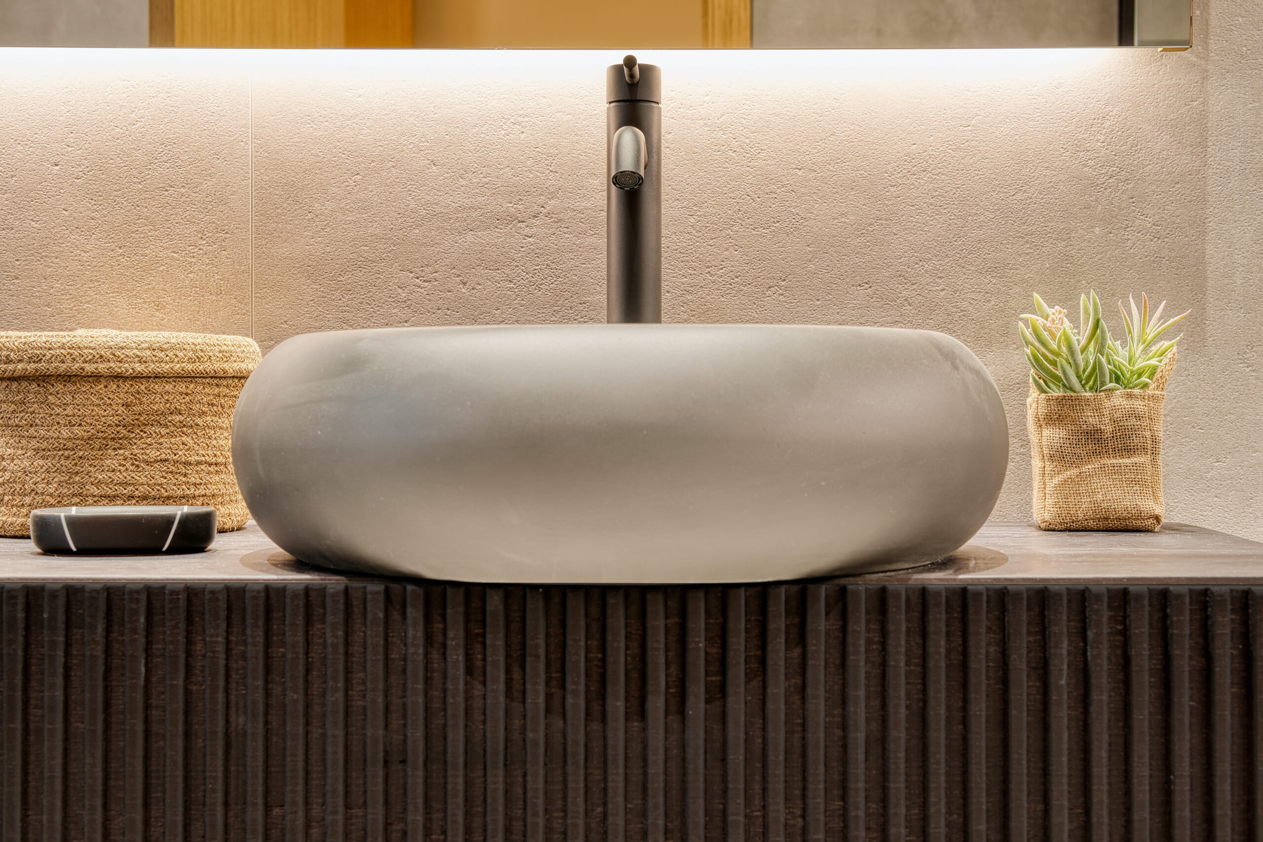 Los baños de este proyecto incorporan los modelos Novales, Fiji, Río y Reunión. La elección cuidadosa de estos lavabos no solo refleja un compromiso con la calidad, sino que también añade un toque de distinción a cada espacio.