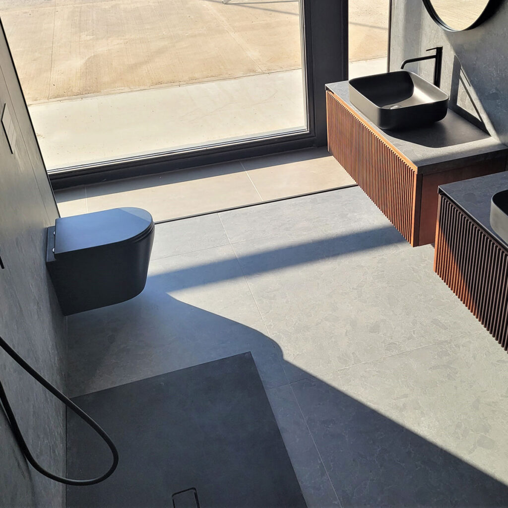 Oliveras renueva sus instalaciones para acoger visitas de constructores, arquitectos o interioristas y clientes en general que quieran conocer los últimos materiales y las nuevas tendencias. Se trata de un espacio compuesto por corners en los que se pueden ver diferentes ambientes. En dos de ellos están presentes los productos de Bathco. Por un lado, se da a conocer la nueva colección de porcelana negro mate de lavabos e inodoros.