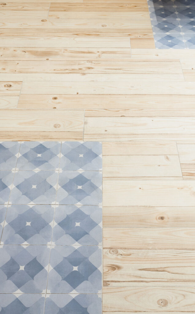 Se escogieron materiales cálidos, como la madera y las fibras, dando un carácter natural y desenfadado al interior, y que, combinados con los tonos relajantes azulados de paredes y acabados, dan un aspecto de cercanía a los clientes y potencian los productos naturales a la venta. Para el pavimento y los revestimientos contaron con materiales de VIVES Cerámica.