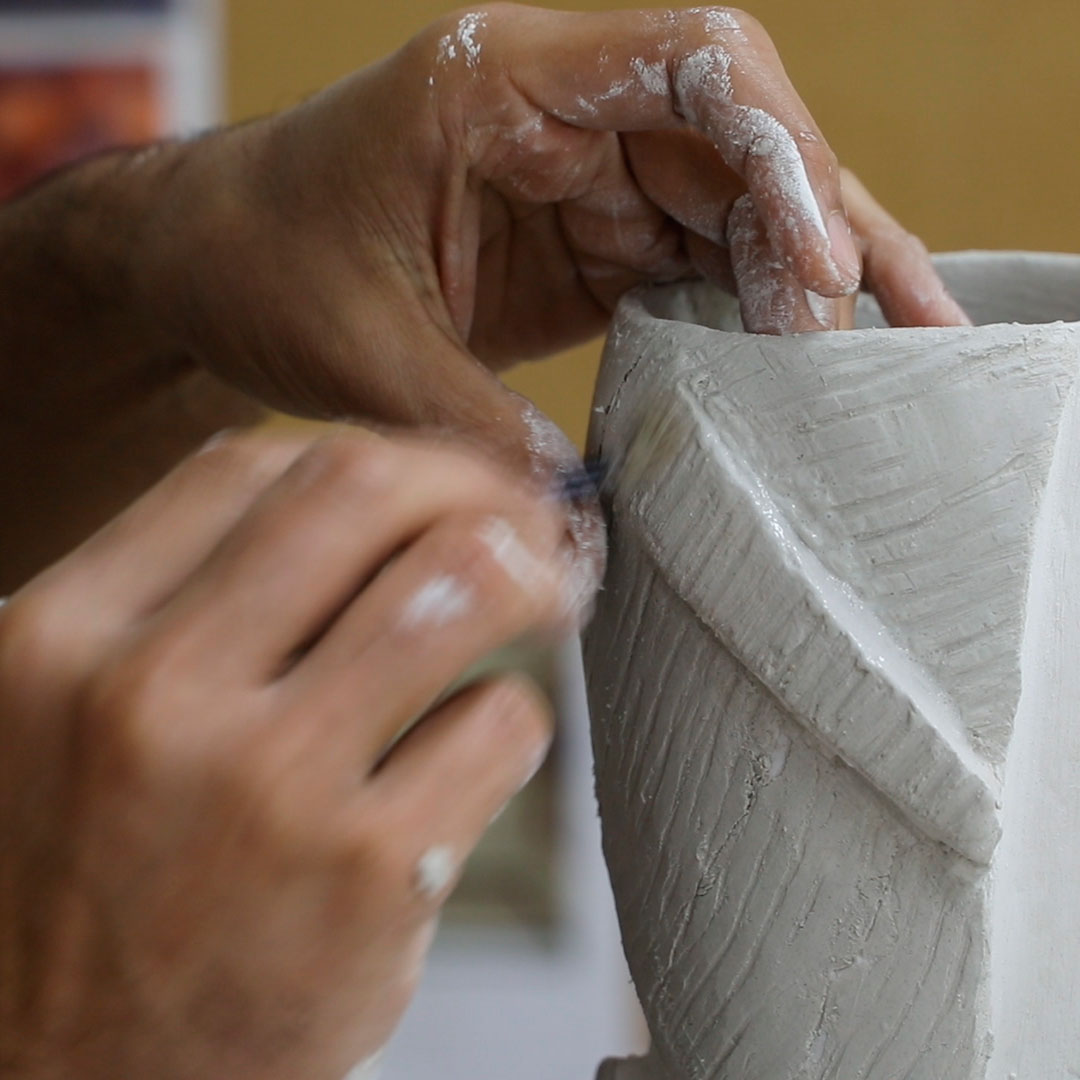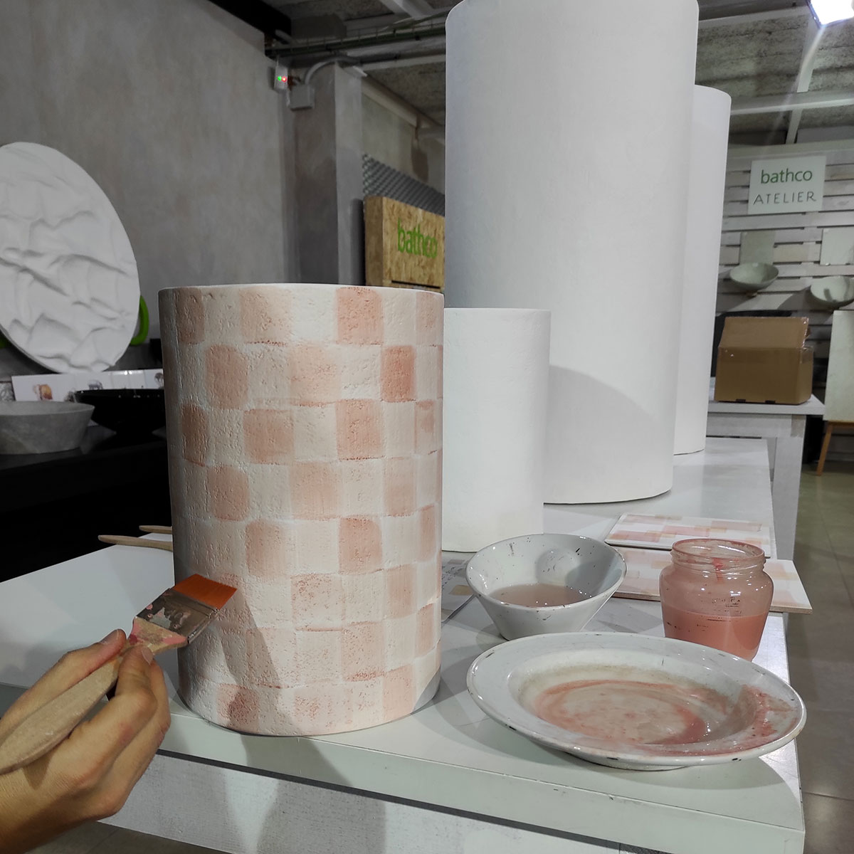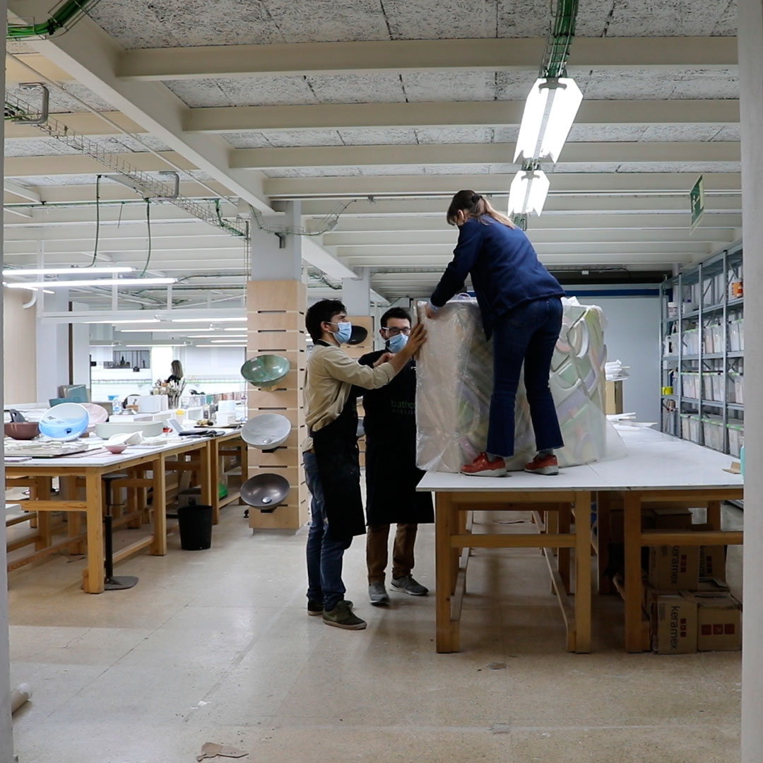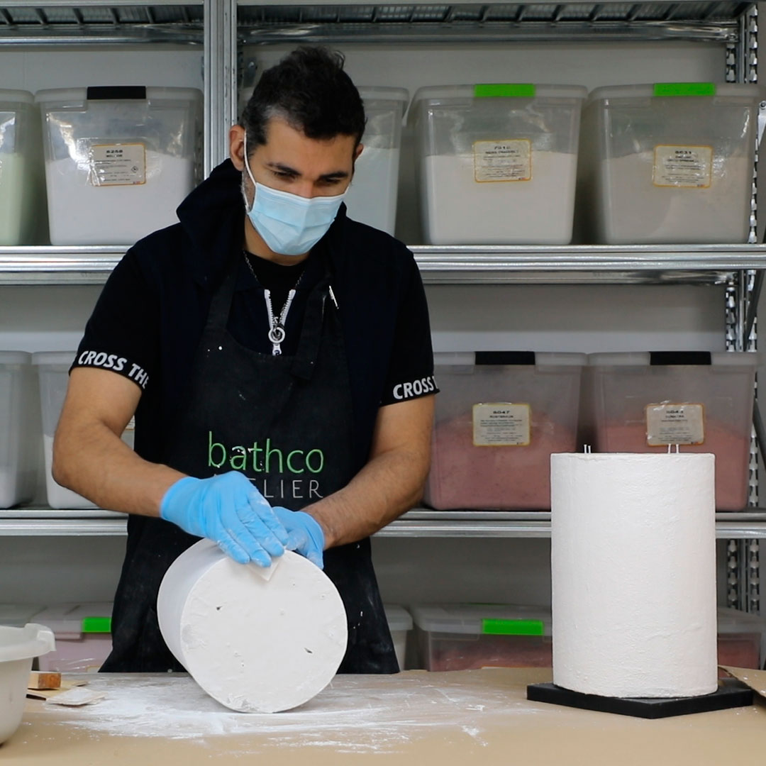 En una sociedad que ve cómo se crean universos paralelos en los que se pierde lo corpóreo, el espacio Bathco reivindica lugares con alma y con sentido de la mano de Patricia Bustos Studio. La creatividad de las interioristas les llevó a imaginar piezas creadas a mano para este nuevo espacio“A lo largo de todos estos años, la artesanía ha acercado nuestro cuerpo, a través de sentidos como la vista y el tacto, a experiencias de belleza, de respeto y de cuidado”.  Patricia Bustos visitó Bathco Atelier para conocer las diferentes técnicas que aplican los artistas a sus trabajos, se hizouna idea de las posibilidades que permite este espacio y se involucró en el proceso de creación trabajando mano a mano con los artistas. De esta manera se ha dado vida a diferentes piezas cerámicas: mostrador, un banco, unas lámparas, unos lavabos con sus peanas y las patas de la mesa central.
