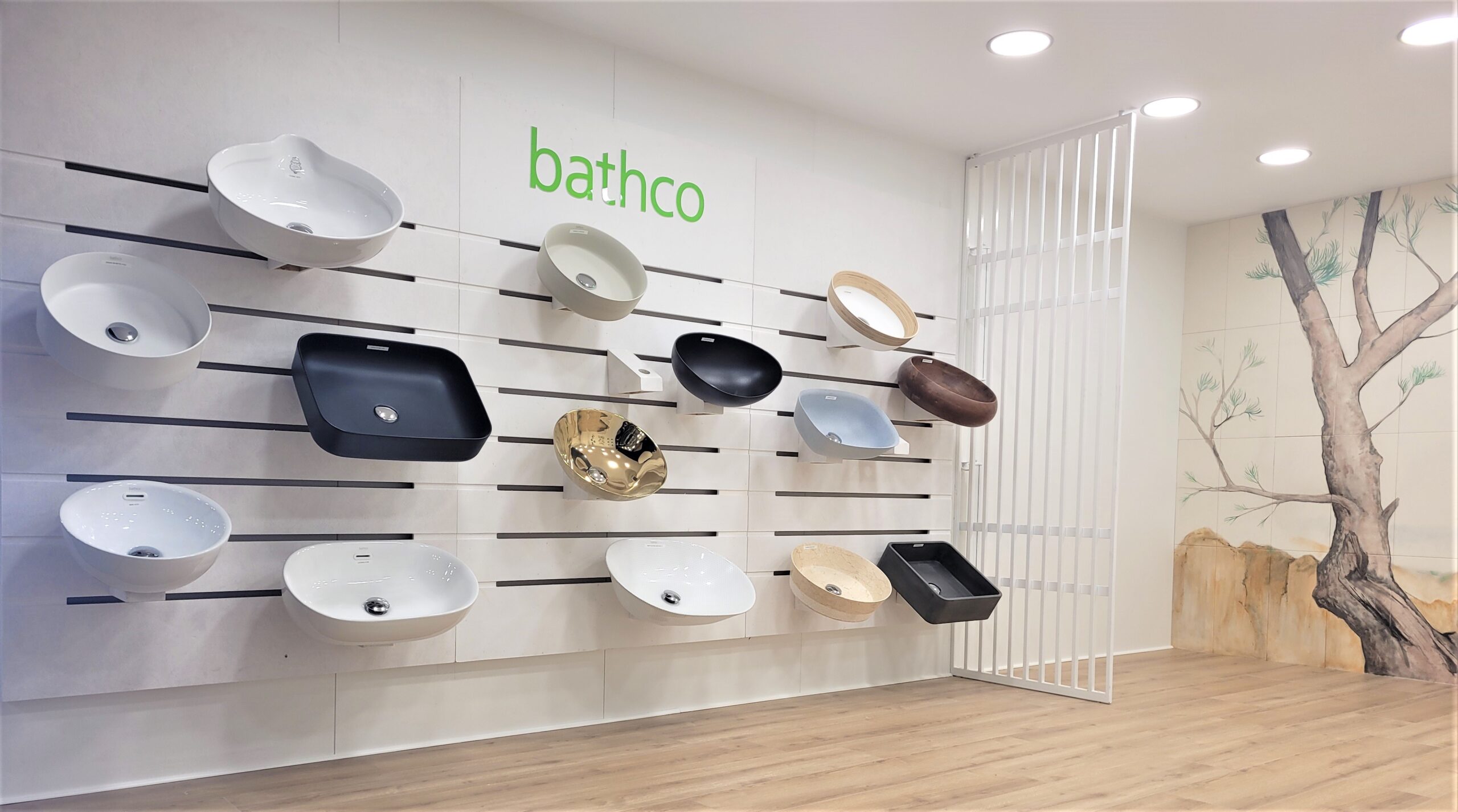 Se trata de un espacio compuesto por corners en los que se pueden ver diferentes ambientes. En dos de ellos están presentes los productos de Bathco. Por un lado, se da a conocer la nueva colección de porcelana negro mate de lavabos e inodoros. También está presente una selección de los lavabos más destacados del catálogo general y de Materia. Además, se pueden ver todas las técnicas que desarrollan los artistas de Bathco Atelier.