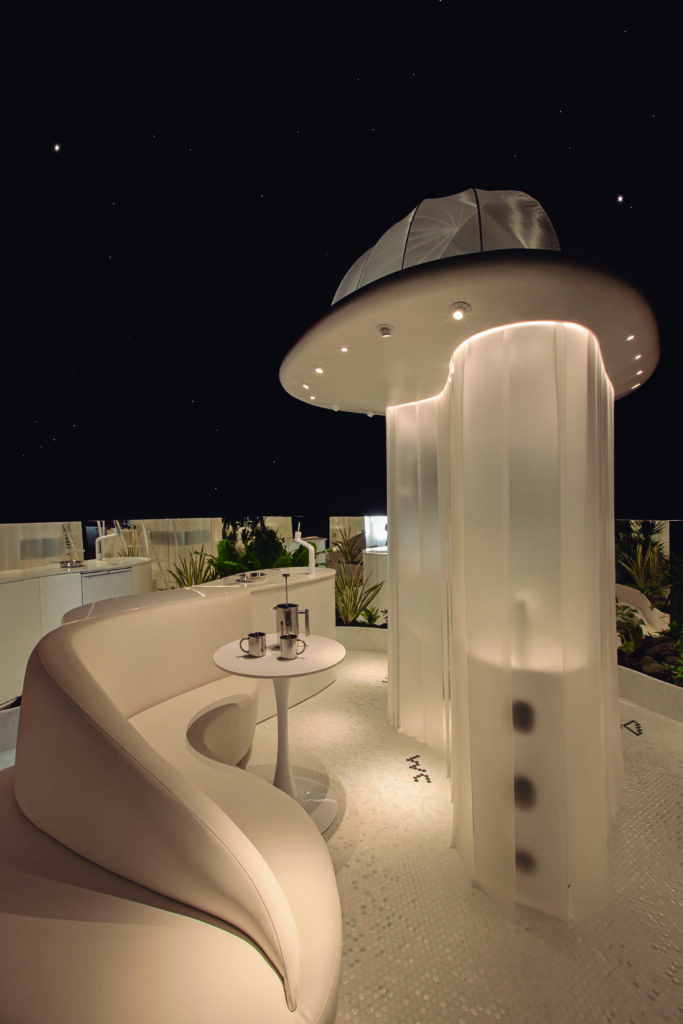 Andreína Raventós Arquitectura plantea en su espacio AR31 un hogar nave. Una casa del futuro de 18 metros cuadrados con todo lo necesario para vivir. Para esta original creación ha contado con el lavabo pedestal Corrales de Bathco.