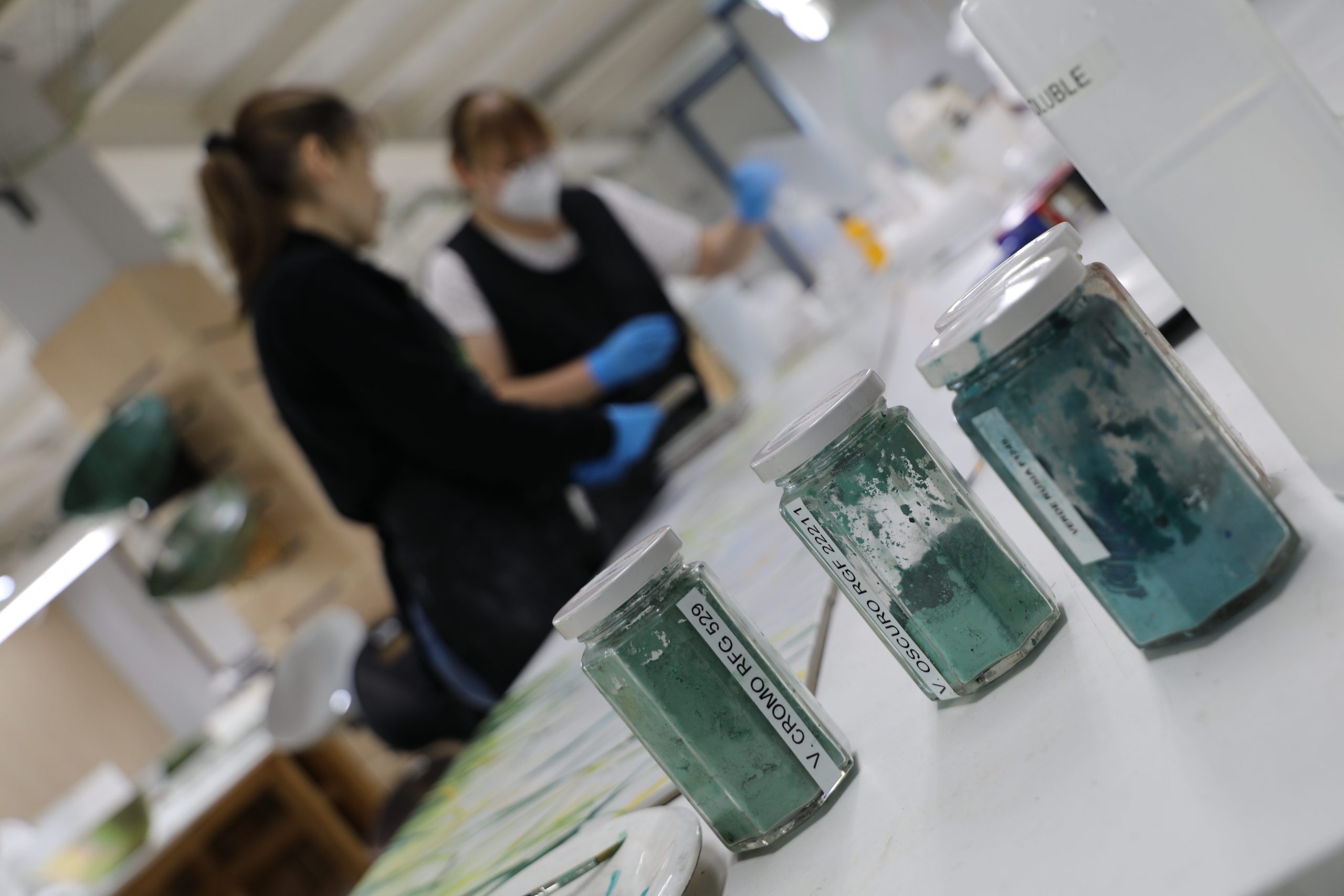 - Retoque a mano con pigmento cerámico: Ángel y José Luis