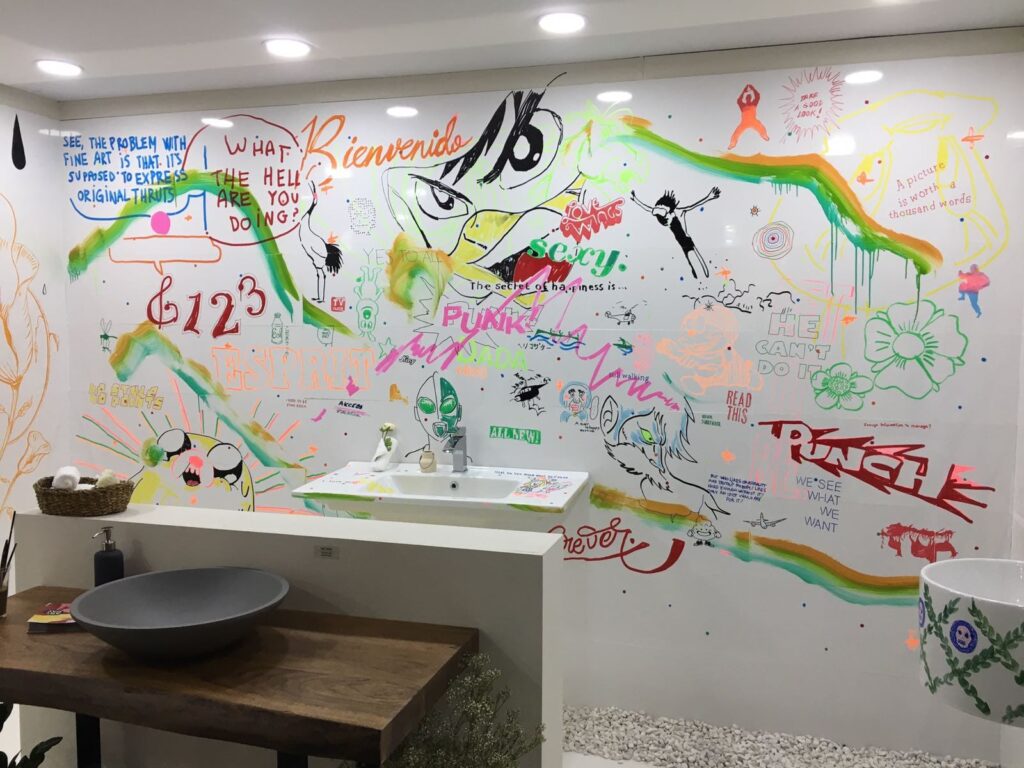 Con motivo de la celebración de Cevisama 2017, Bathco dedicó un día al arte que tan presente está en sus últimas colecciones. Durante la jornada denominada ART DAY Iena Cruz, Judas Arrieta y Emeric Minaya plasmaron su particular forma de vivir el arte a través de diferentes acciones artísticas.