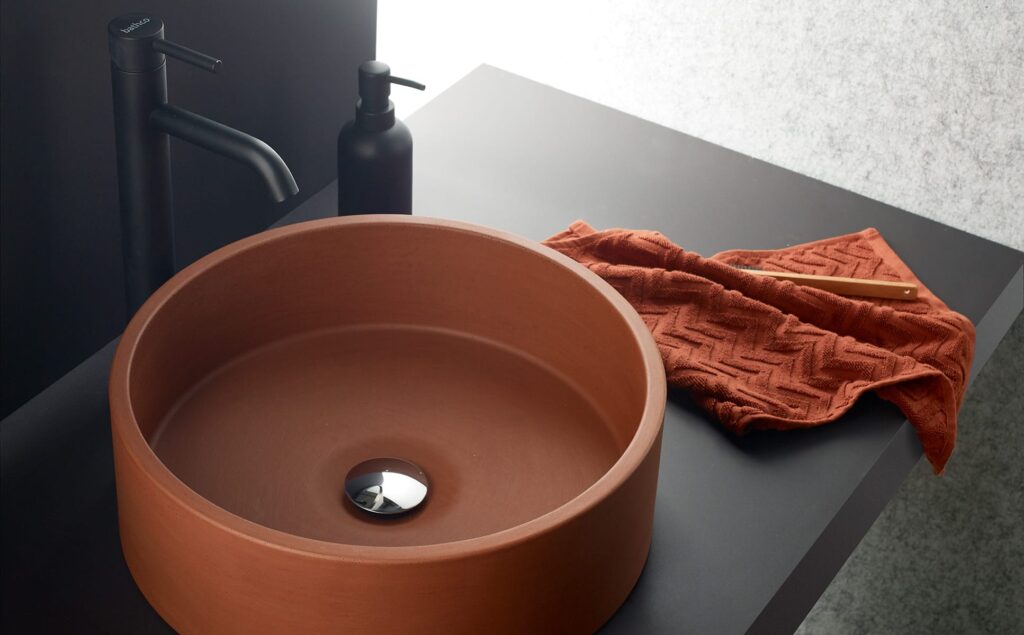 Los nuevos lavabos de Bathco están fabricados en una mezcla de cemento y resina enriquecida con elementos cuidadosamente seleccionados que dan lugar a un nuevo material muy sólido y resistente.
