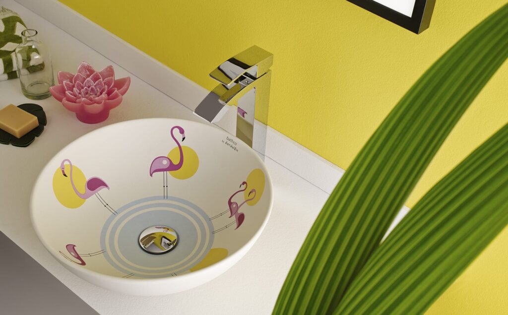 El espíritu innovador de Bathco siempre le ha llevado a buscar nuevas fuentes de inspiración y a explorar otros campos que aparentemente pueden resultar ajenos al mundo del baño pero que comparten la pasión por el diseño. Fruto de esta inquietud surgió en 2015 la colaboración con el prestigioso diseñador de moda David Delfín dando como resultado una primera colección compuesta por tres estampados: Diamante, Ants y Flash que en 2016 se ha visto ampliada con tres nuevos decorados: Ali, Jellyfish y Pink Flamingos.