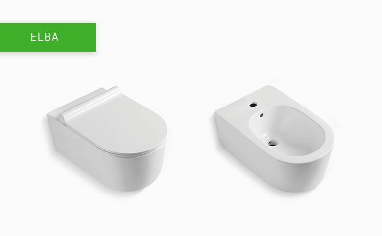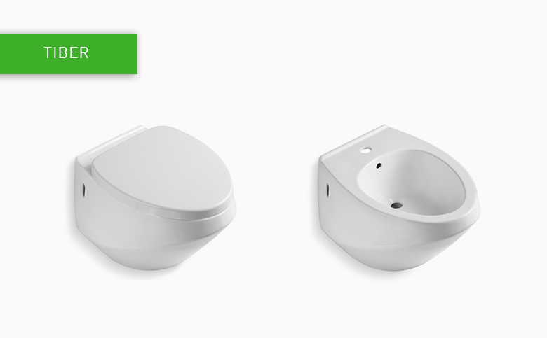 Otro aspecto que desaparece, además del pie del inodoro, es el tanque, presentándose así modelos empotrados más modernos. Tres claros ejemplos de todo ello son tres familias que cuentan con bidé e inodoro en porcelana blanca: Congo, Elba y Tiber.