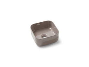 Cube 40 Moka es un lavabo rectangular de instalación sobre encimera, fabricado en porcelana con acabado brillo en color moka