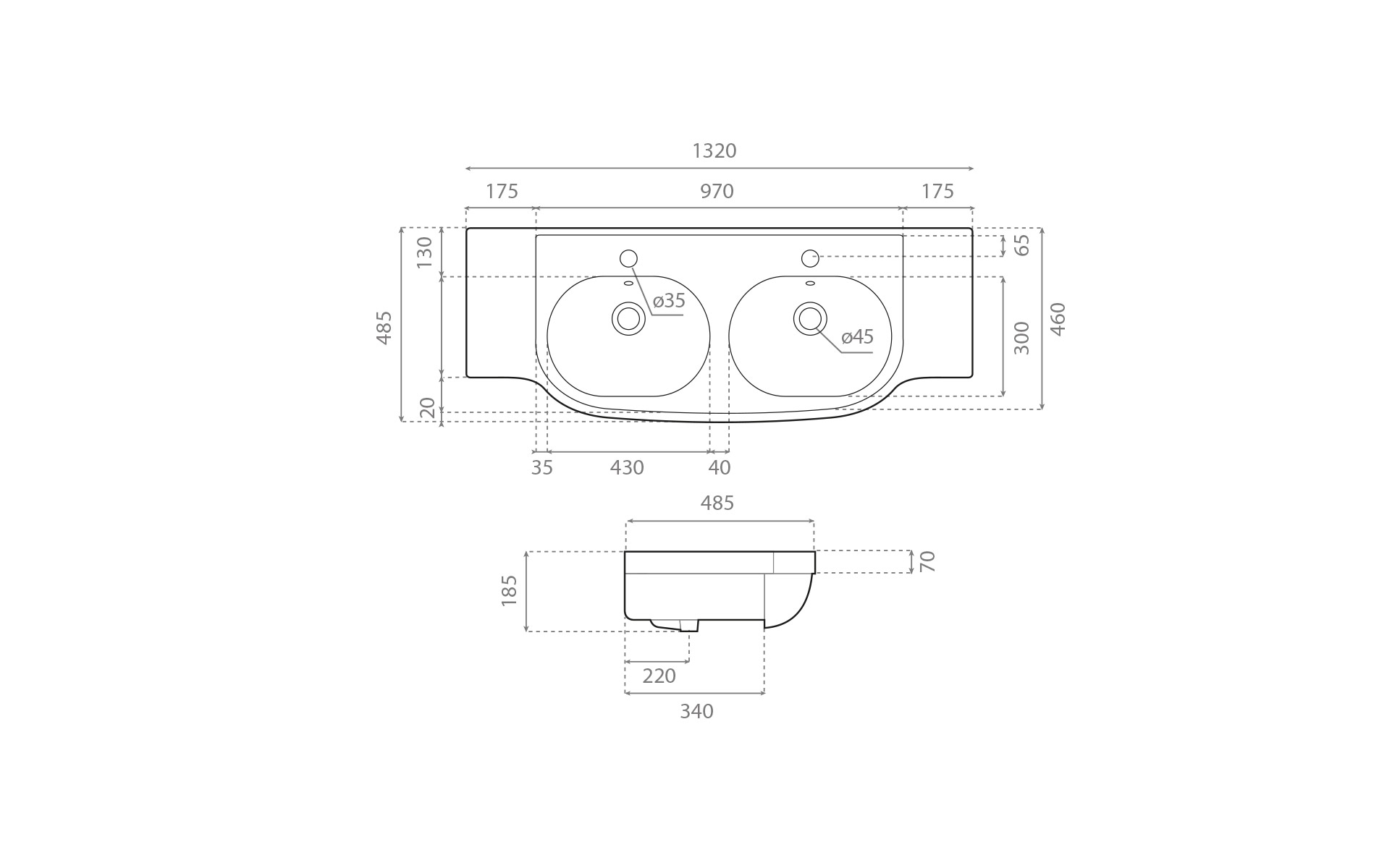 Lavabo rectangular suspendido en porcelana brillo. De gran formato, puede instalarse con soportes, aportando robustez y funcionalidad.