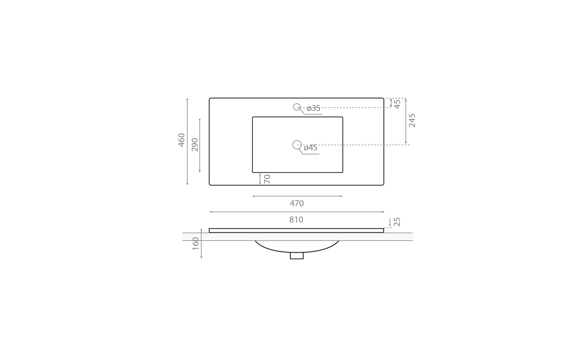 Lavabos rectangulares en porcelana brillo, de instalación sobremueble. Disponibles en distintas medidas con rebosadero incluido.