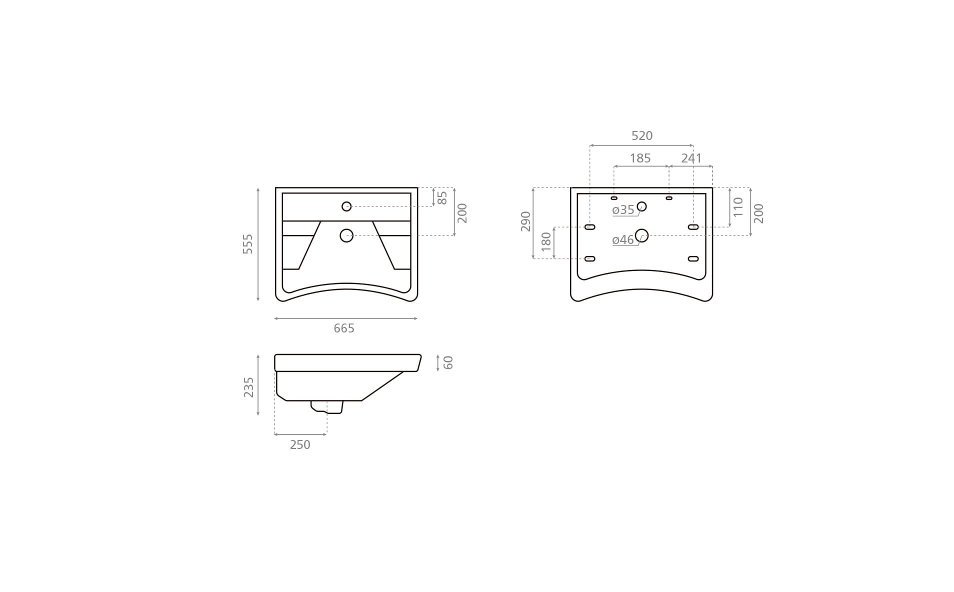 Lavabo suspendido de porcelana que combina proporción generosa y estética arquitectónica. Una pieza que aporta carácter sin renunciar a la sencillez.