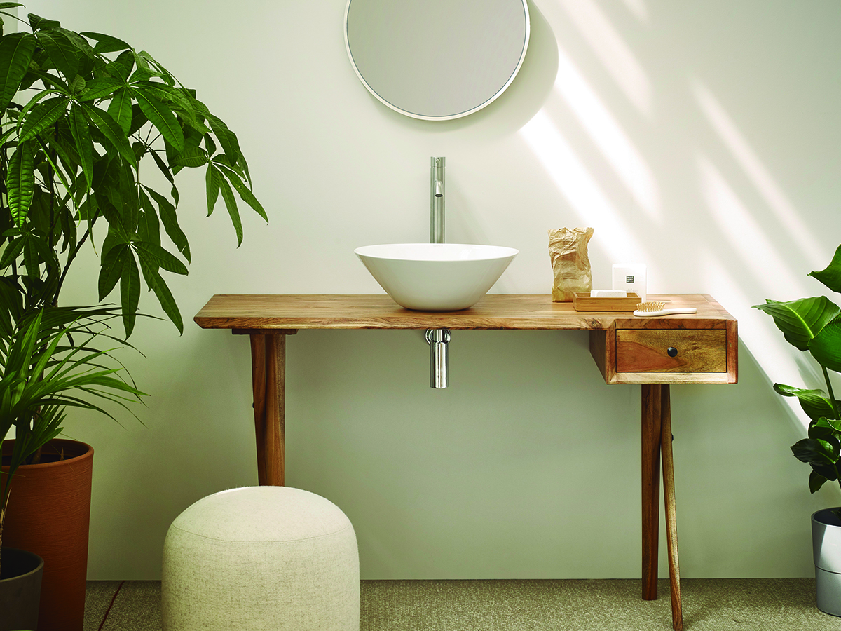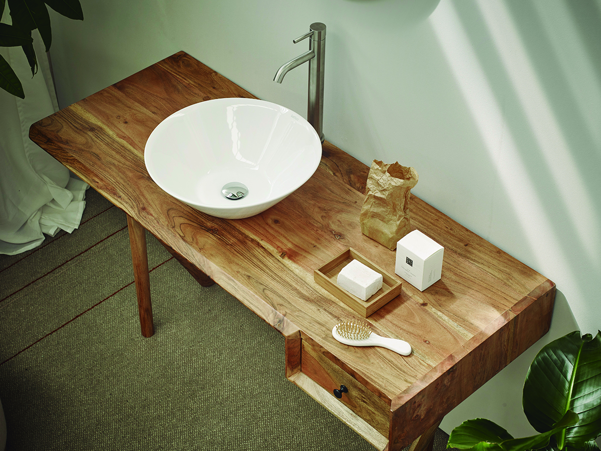 Lavabo circular en porcelana blanca brillo. Su diseño sencillo y elegante lo convierte en un clásico atemporal para la encimera.