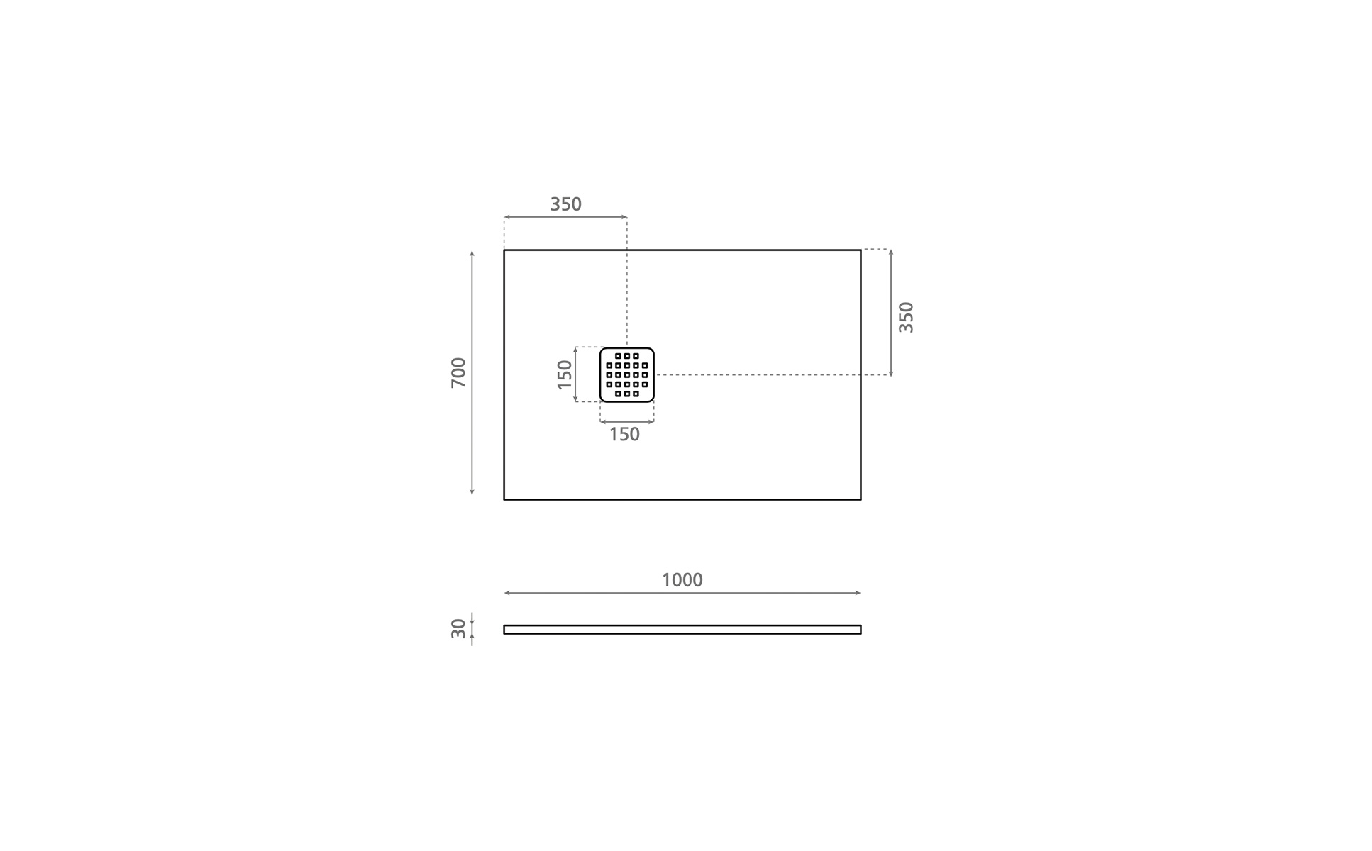 Plato de resina de poliéster con cargas minerales y recubrimiento en gel coat sanitario. Disponible en blanco o antracita, con espesor de 3 cm y desagüe lateral.