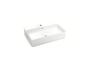 Rectangular washbasin in gloss white porcelain, in two sizes and with countertop or wall-mounted installation. A versatile and timeless solution.