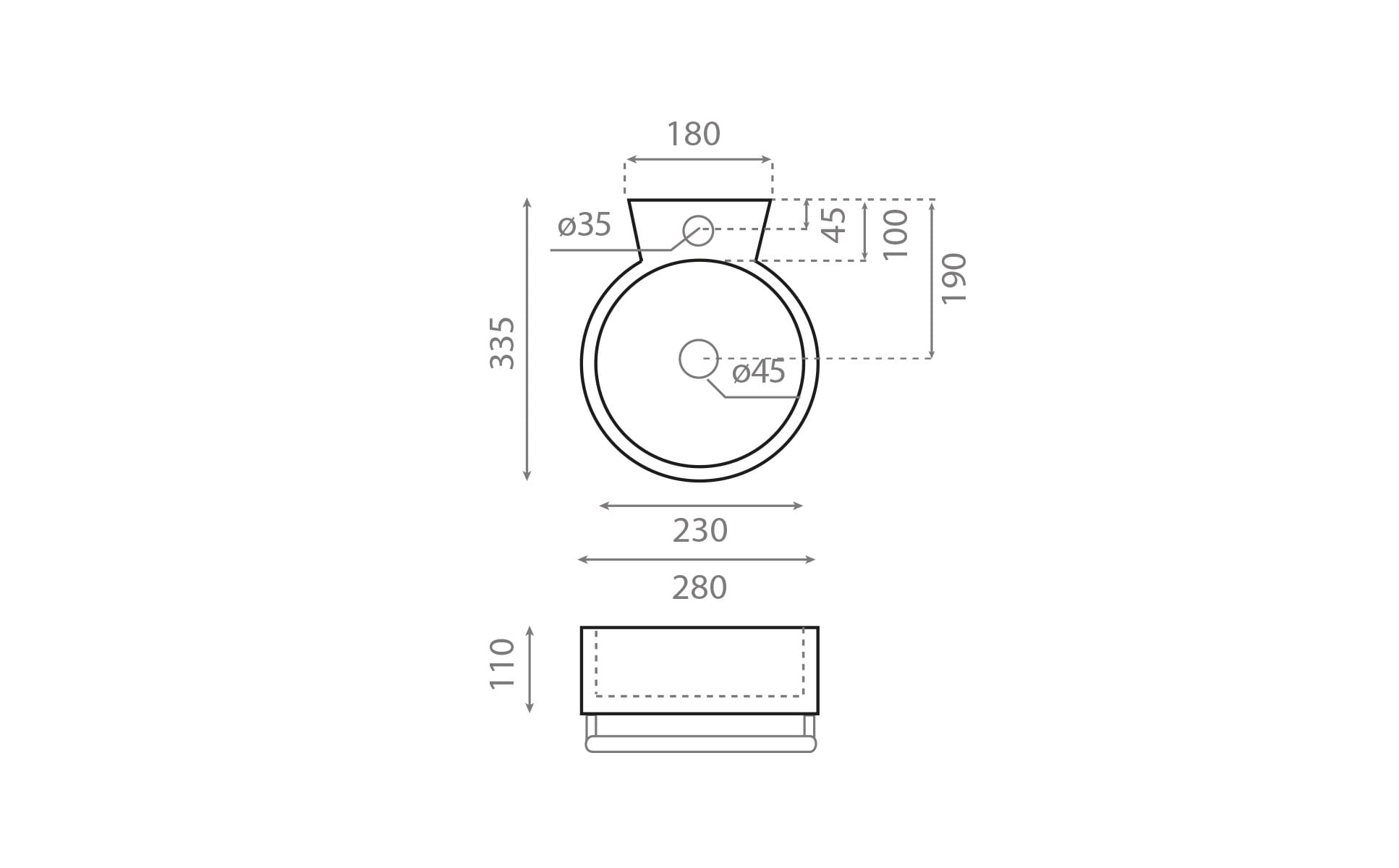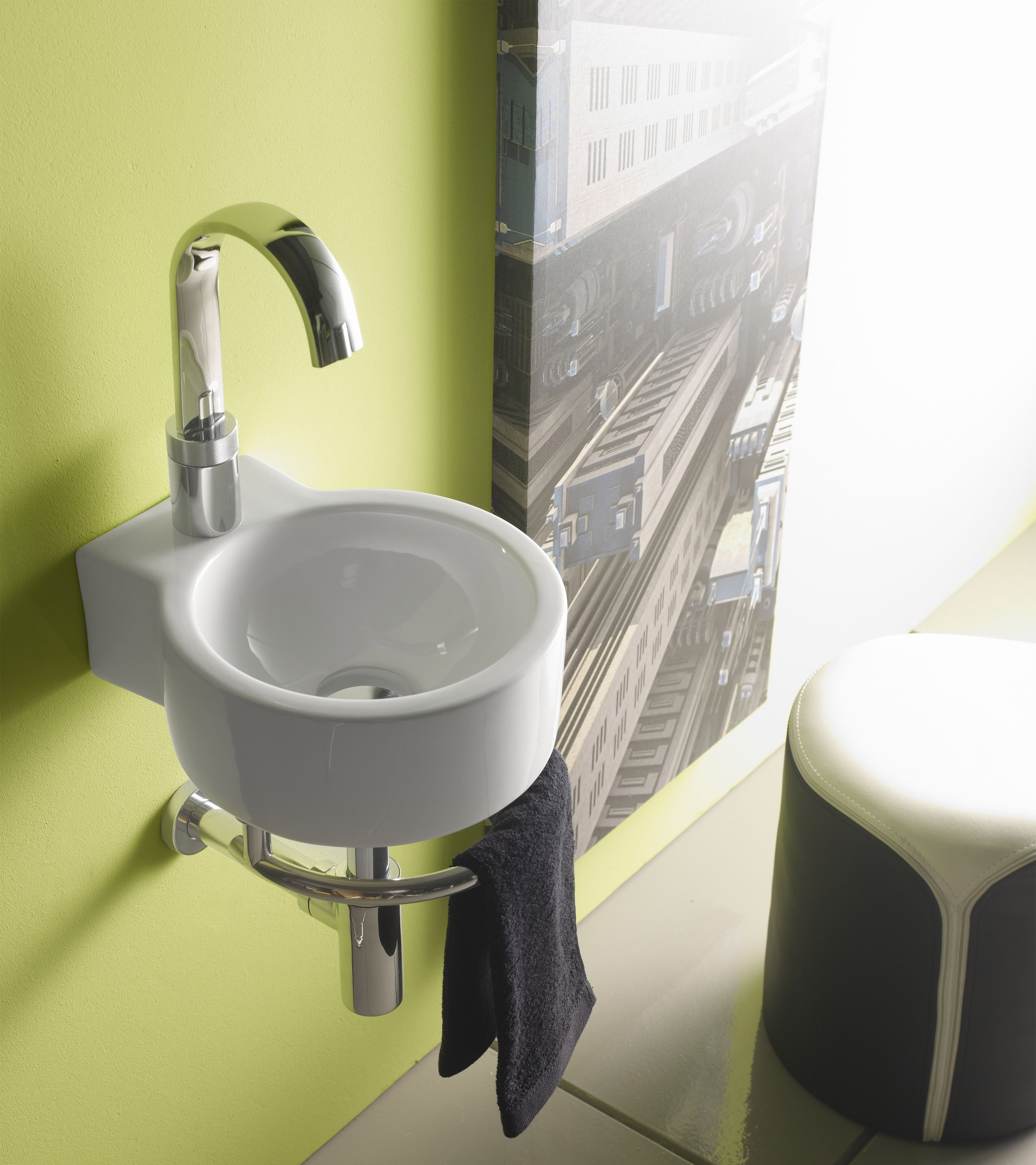 Lavabo mini suspendido en porcelana blanca brillo. Una solución compacta y práctica, ideal para espacios reducidos.