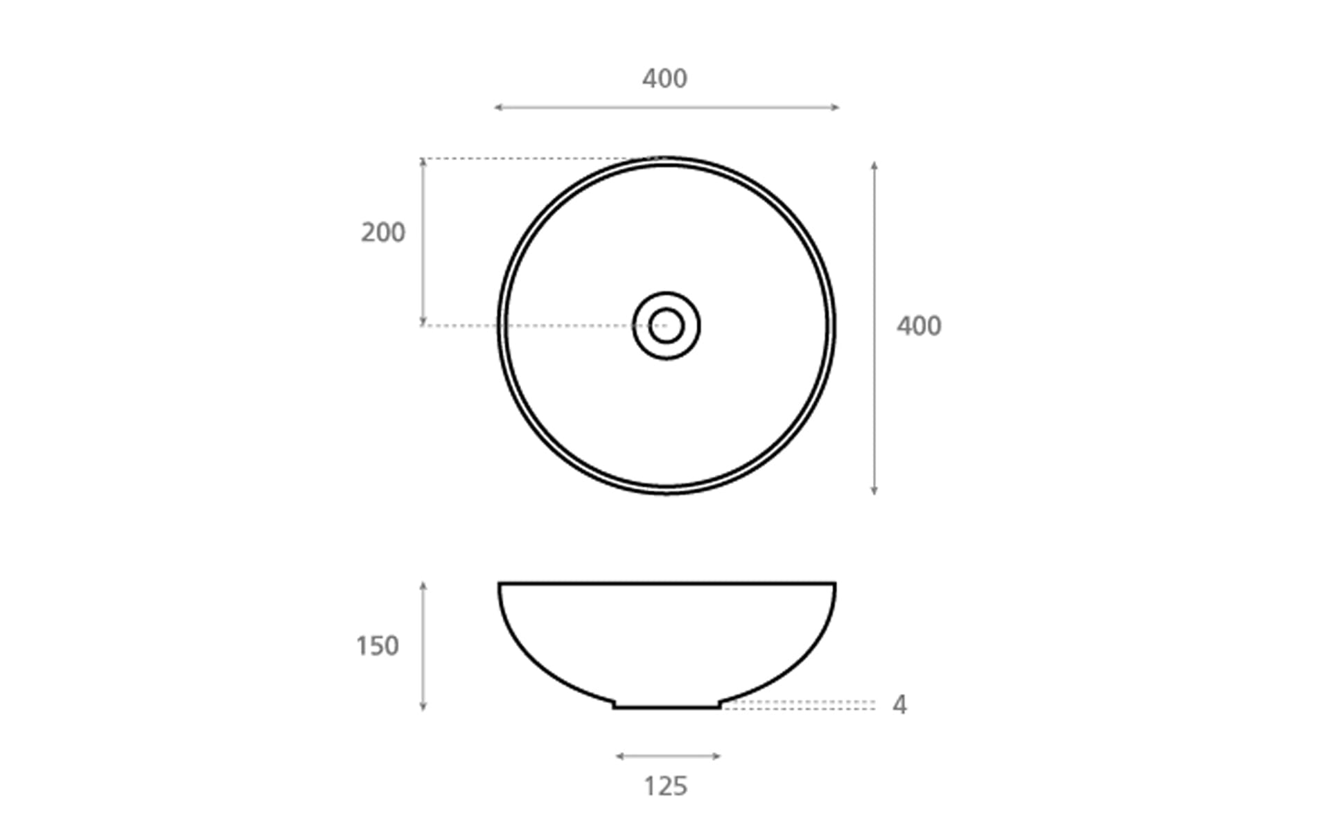 Lavabo circular en porcelana blanca brillo. Su diseño atemporal y su superficie pulida lo convierten en un clásico del baño.