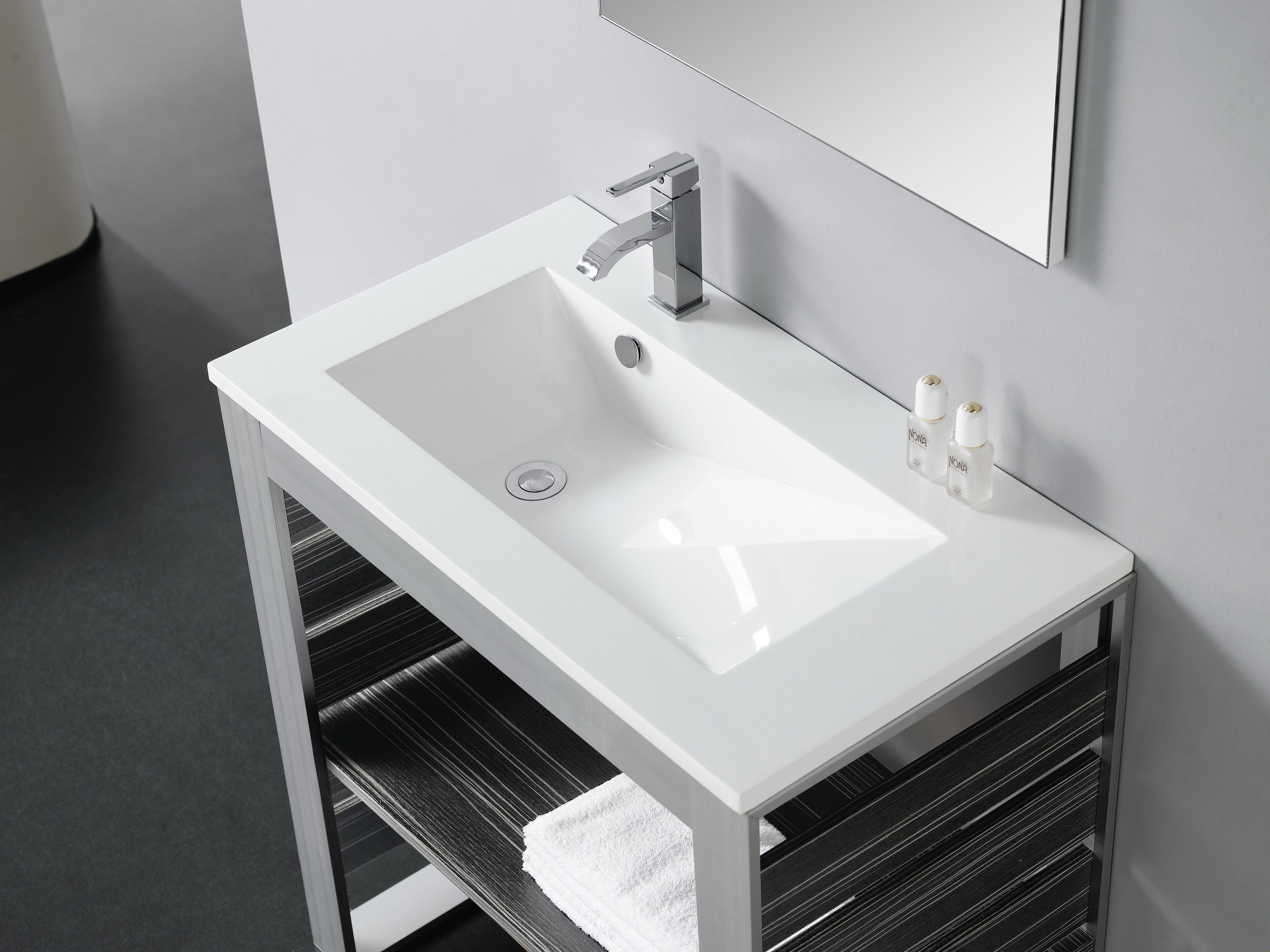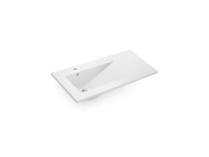 Lavabo en resina blanca con diseño rectangular. Su estética esencial y funcionalidad lo convierten en una opción versátil para el baño contemporáneo.