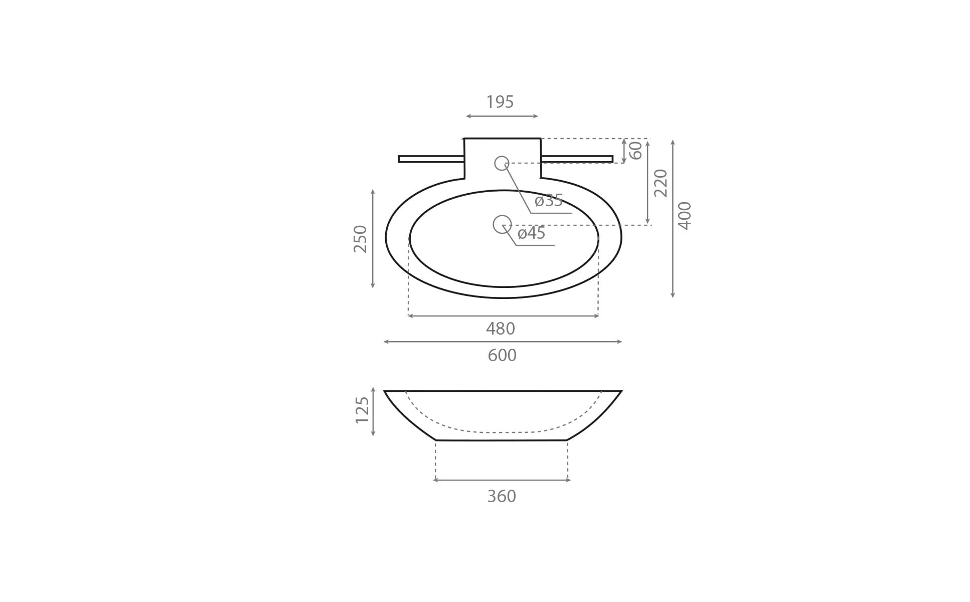 Lavabo oval de porcelana blanca suspendido. Una pieza compacta y versátil, con diseño sencillo y práctico que se adapta a distintos tipos de baño.