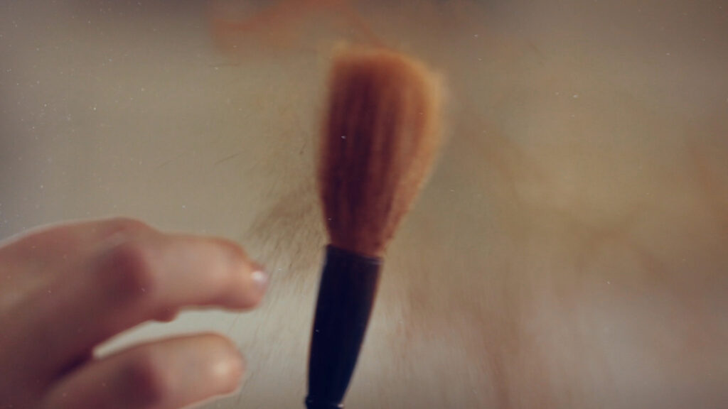 Todo ello se realiza manualmente, aplicando una esponja y un aceite especial. Posteriormente se somete al proceso de horneado para fijar los materiales aplicados.