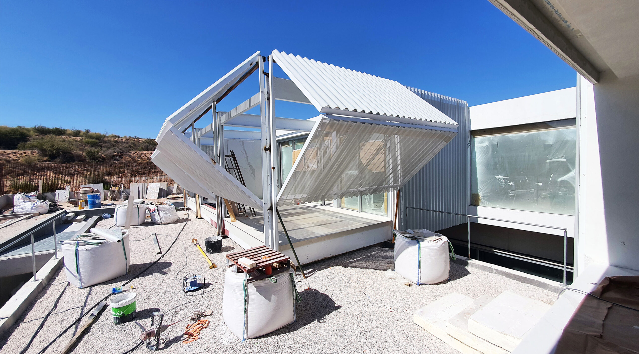 Emilia: El sistema LAM es un sistema constructivo industrializado, tecnológico y autosuficiente que actualmente hemos aplicado a una casa modular en la región de Murcia. Se basa principalmente en un módulo tridimensional que permite crecer o decrecer según las necesidades funcionales y económicas del usuario. Básicamente a través de un sistema estructural que hemos patentado recientemente en W se va ensamblando esa estructura ya sea in situ o directamente en fábrica, en nave para luego poder ser transportado en camión.