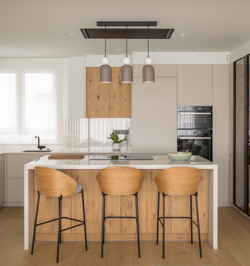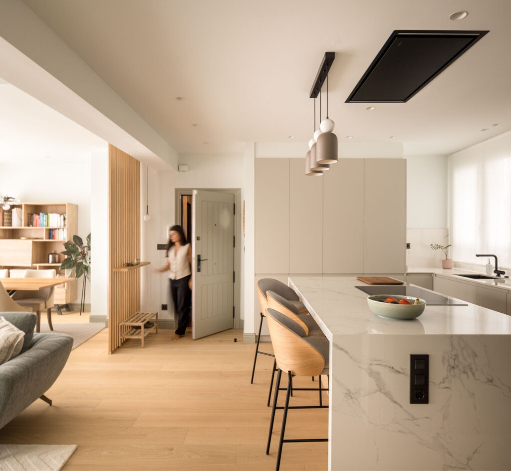 El primer paso en esta emocionante travesía fue replantear la distribución existente para sacar el máximo provecho de cada rincón de la vivienda. La cocina se abrió hacia la sala de estar y el comedor, creando una zona interconectada para el disfrute de la vida familiar y social.