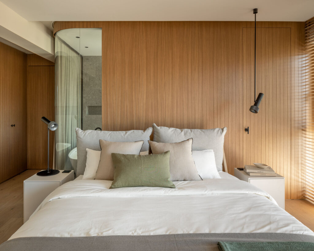 TendenciasEn un dormitorio con baño integrado, resolver la transición entre la zona de descanso y el espacio de aseo puede ser todo un dilema. Aunque a veces parezca que no hay suficiente espacio para un aseo integrado, te sorprenderían las posibilidades disponibles.