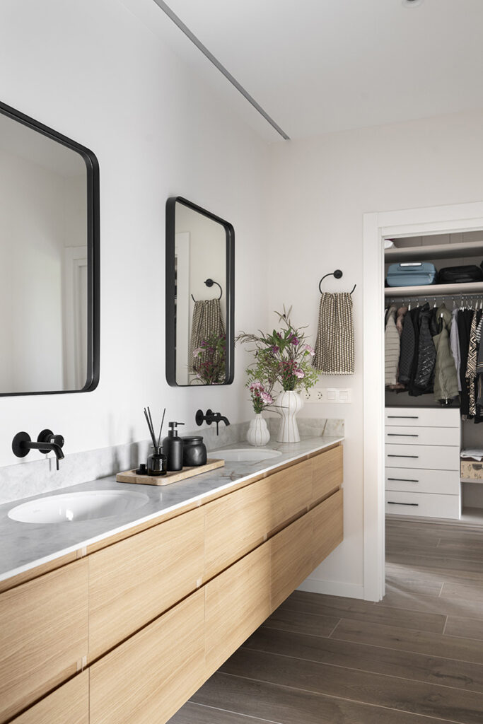 Para los amantes de la organización, una idea práctica es colocar el baño en un pasillo que también conecte con el vestidor. Esto mejora la funcionalidad y el flujo en el uso diario.