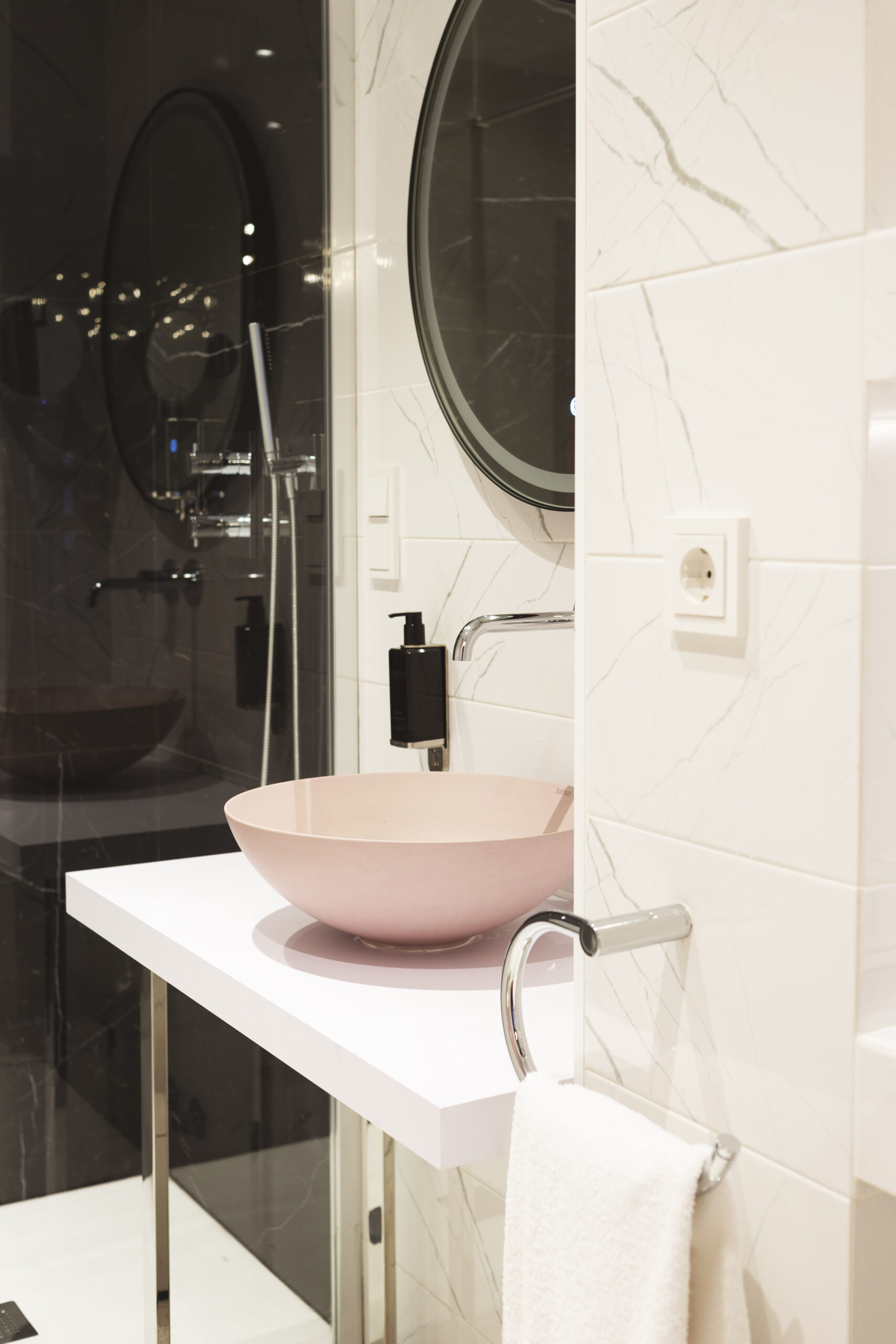 Ya vimos el lavabo Lysa en tonos rosas en la Double Premium y vuelve a estar en la habitación 101 Bohéme.