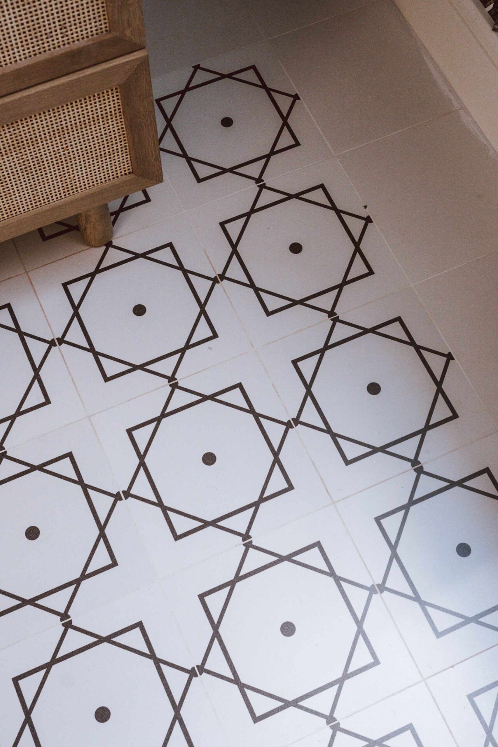 Los diseñadores aseguran que “nos encanta diseñar baños diferentes. La combinación de materiales de este baño tiene el ‘match’ perfecto”. Para lograr ese match eligieron un mueble de Made y sobre la encimera colocaron el lavabo Santoña de Bathco con el grifo Athenas negro mate, para las paredes escogieron azulejos en espiga de Natucer y papel pintado de BN Walls y para el suelo se decantaron por Vives cerámica.