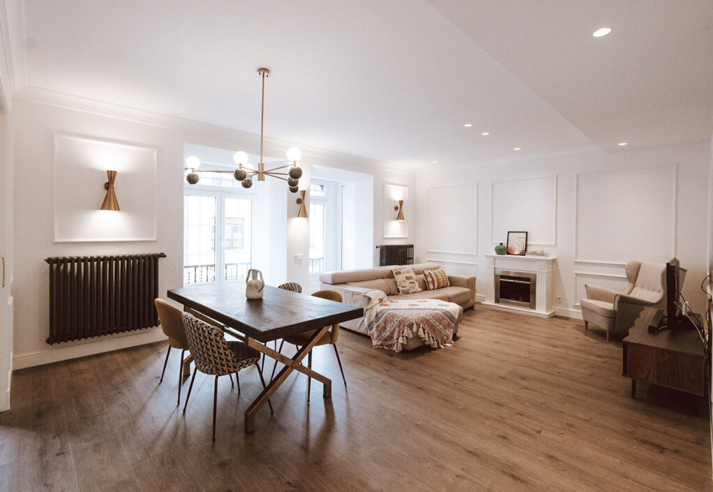 Los propietarios de este piso necesitaban una reforma integral para cubrir las necesidades de la familia y confiaron en Trigo Studio para ponerla en marcha. Patri y Diego, diseñadores de interiores, nos cuentan cómo fue este proyecto: “muchas veces más es más y esta vivienda tiene todo lo que a Trigo le vuelve loco: molduras, detalles dorados, mezcla de suelos, papeles pintados, lámparas de infarto…”.
