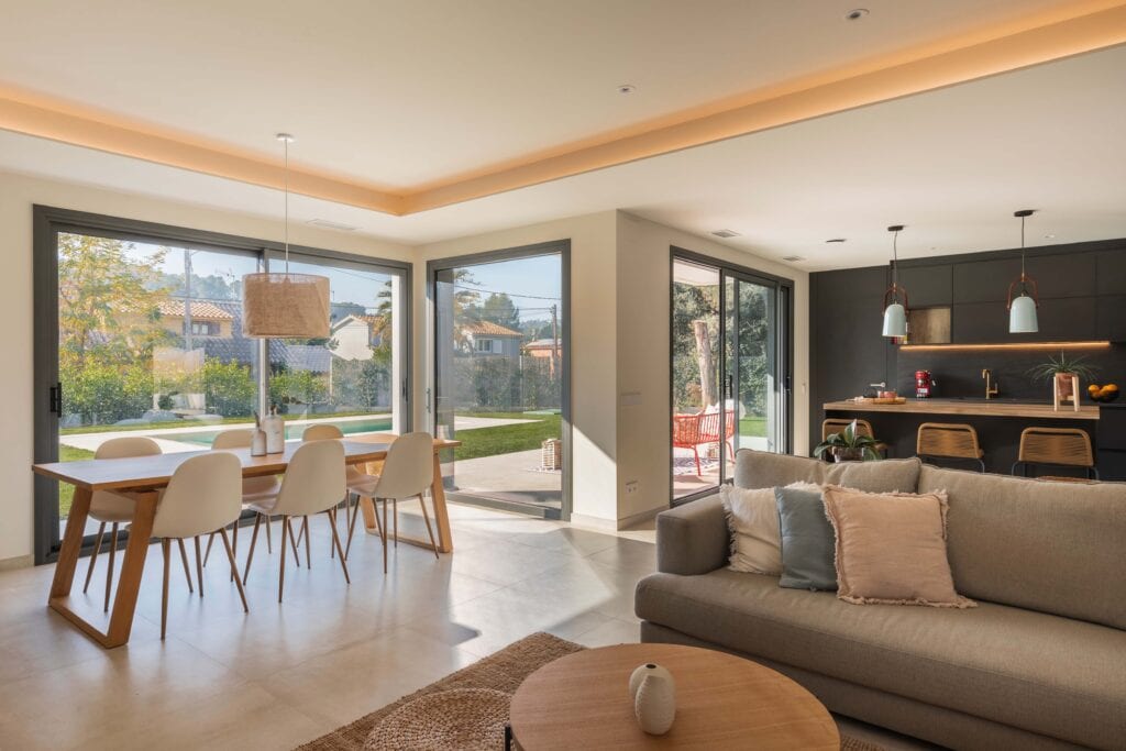 Los profesionales de Prêt-à-porter casas construyeron este santuario en una planta baja dispuesta a grandes ventanales y balconeras permitiendo a la luz natural estar presente durante todo el año. De hecho, esta vivienda cuenta con el certificado energético A que indica el máximo de la eficiencia energética.