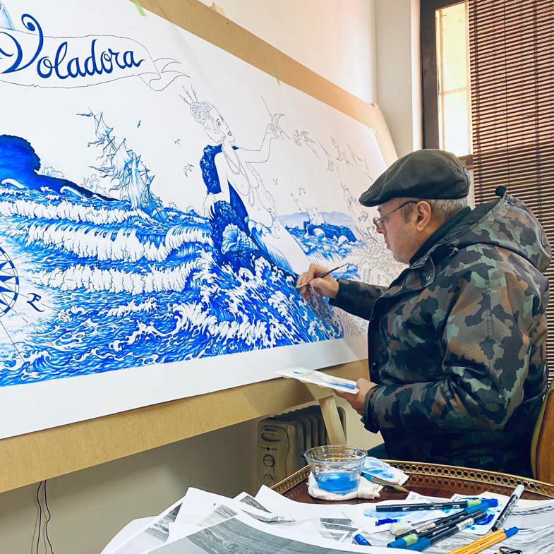 Alfonso Piñero fue el encargado de realizar la ilustración que preside el comedor principal del restaurante en el que no faltan referencias a la ciudad de Santander. El artista quisorepresentar “a ‘La Voladora’ de forma alegórica con la figura de una sirena (que no tiene piernas, como la protagonista), el faro de Cabo Mayor, los barcos entrandoa la bahía, incluso la roca de la playa del Camello, etc.».