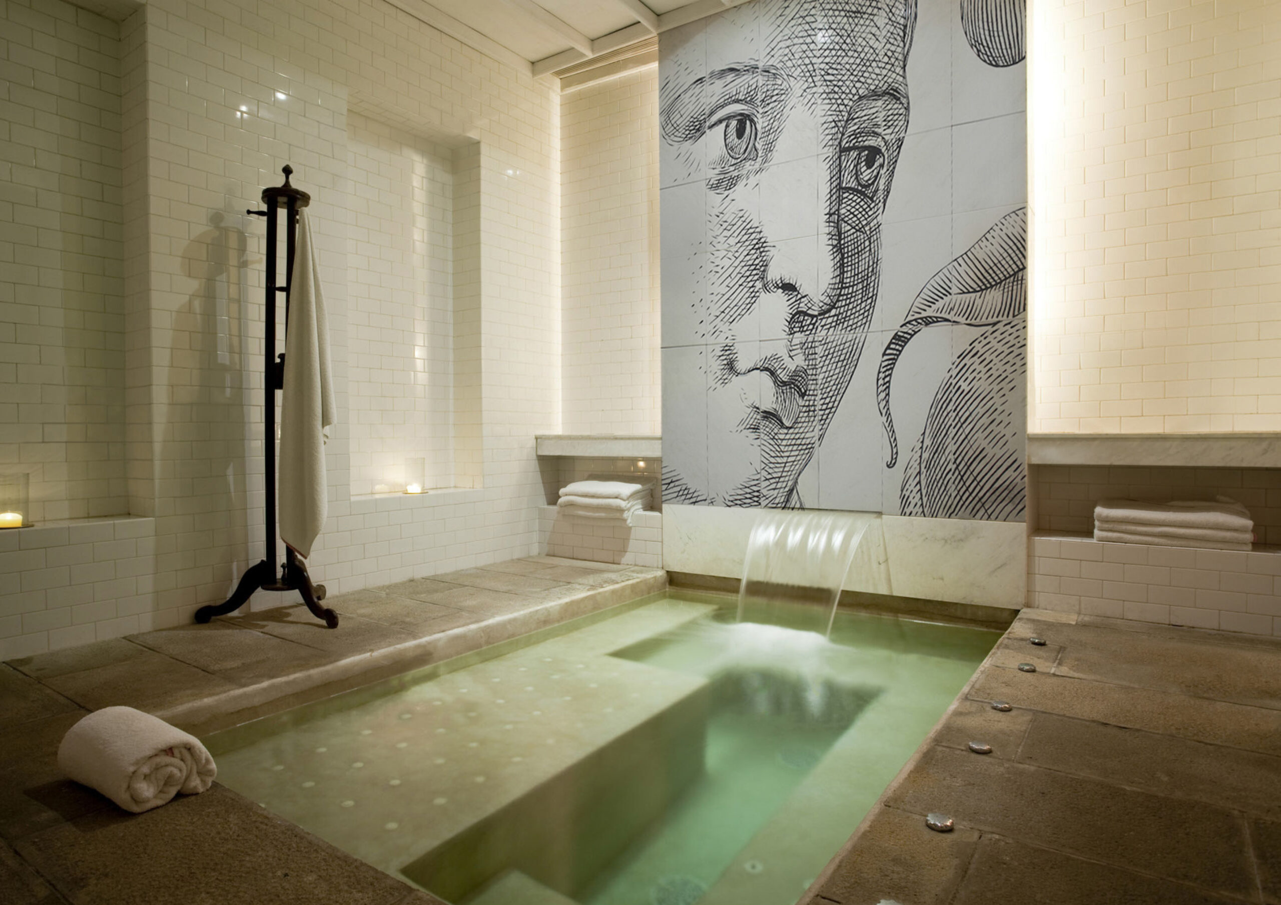 Una de las estancias de este SPA en pleno centro de Florencia, se inspira en los balmes privados de las villasromanas de la antigüedad. Sin mobiliario ni otros elementos que obstaculicen el discurso, el espacio tiene una clara funcionalidad dentro de una estética clásica y sencilla.