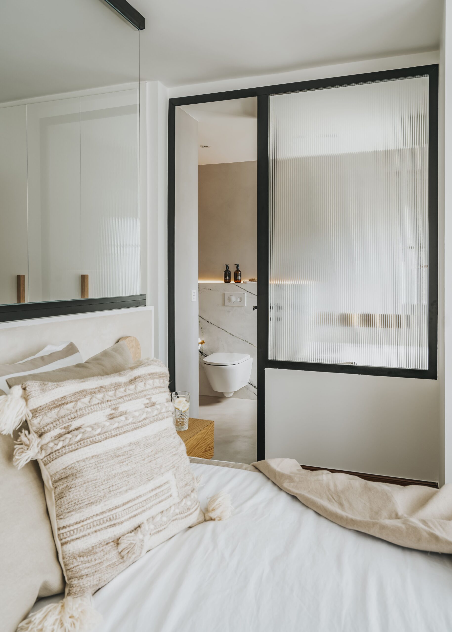 Cada elemento de este proyecto ha sido cuidadosamente seleccionado para crear un espacio que combina estética y funcionalidad. El resultado es un dormitorio con baño integrado, perfecto para el descanso y el disfrute diario.