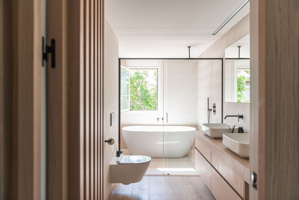 En cuanto a las comodidades del baño, la elección entre bañera y ducha no fue necesaria, ya que ambas fueron integradas de manera armoniosa. Esta decisión ofrece flexibilidad en la vida cotidiana, al mismo tiempo que optimiza el uso del espacio. La combinación de estos elementos brinda un lienzo creativo para la planificación del baño, creando un ambiente más espacioso y funcional.