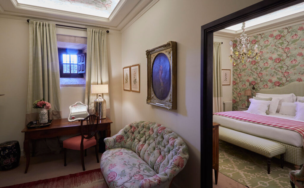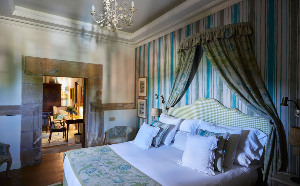 Subiendo la antigua escalera en la primera planta se encuentra esta acogedora habitación basada en el carácter intrépido de la condesa.